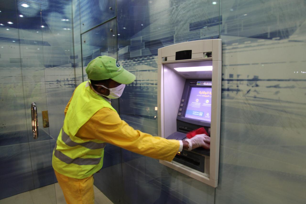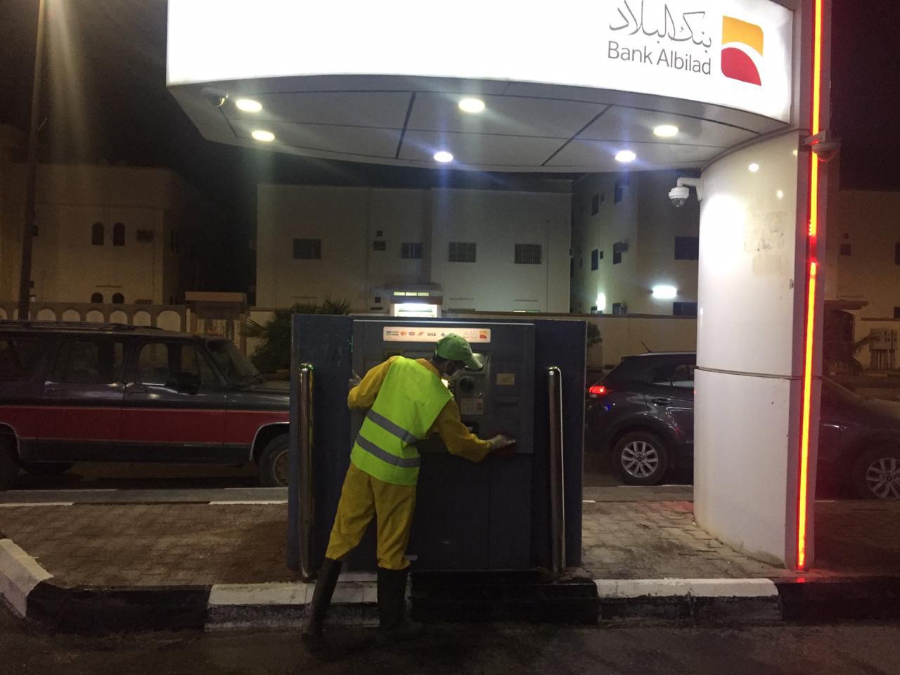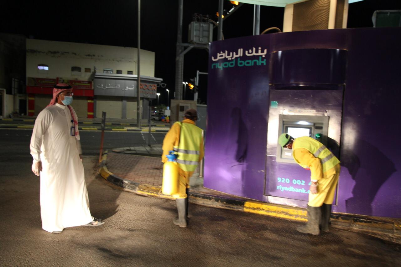 بتوجيهات وضمن مبادرة امير الجوف بلدية القريات : تعقيم 67 صراف آلى بشكل متواصل