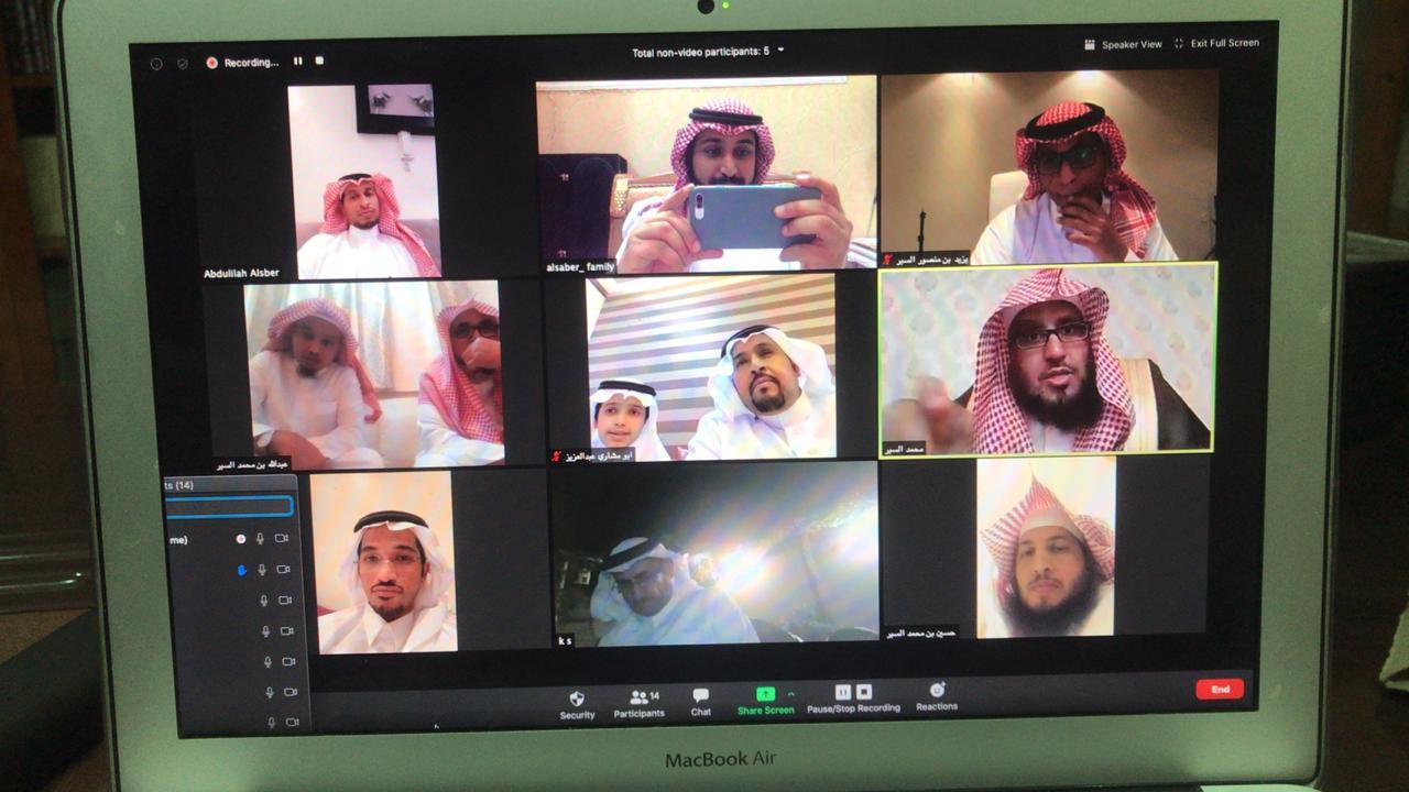 تماشياً مع اوضاع أزمة كورونا أقامت أسرة السبر في الرياض وحوطة بني تميم والشرقية لقاء افتراضيا من خلال حفل معايدة إلكتروني بواسطة تطبيق زوم للاجتماعات صوتا وصورة، حيث رفعت الأسرة التهاني والتبريكات للقيادة الرشيدة بالعيد السعيد مثمنة ما تبذله الدولة – أيدها الله – بكافة قطاعاتها ومسؤوليها في هذا الشأن مقدرة جهود رجال الأمن وأبطال الصحة في مكافحة ومحاصرة جائحة كورونا . وشملت المعايدة الافتراضية كلمات توجيهية وابيات شعرية ومداخلات ترفيهية ومشاركات للأطفال مع طرح بعض الأفكار والفوائد للحجر المنزلي مع التأكيد على الا تكون ازمة كورونا عائقا للتواصل فيما بين الأسر والأرحام وتبادل المعايدات الكترونيا وهاتفيا . مع التأكيد على تطبيق الأنظمة والتعليمات بحذافيرها طاعة لله ثم لولاة الأمر ، مع الدعاء والابتهال بأن يرفع الله البلاء والداء عن البلاد والعباد .