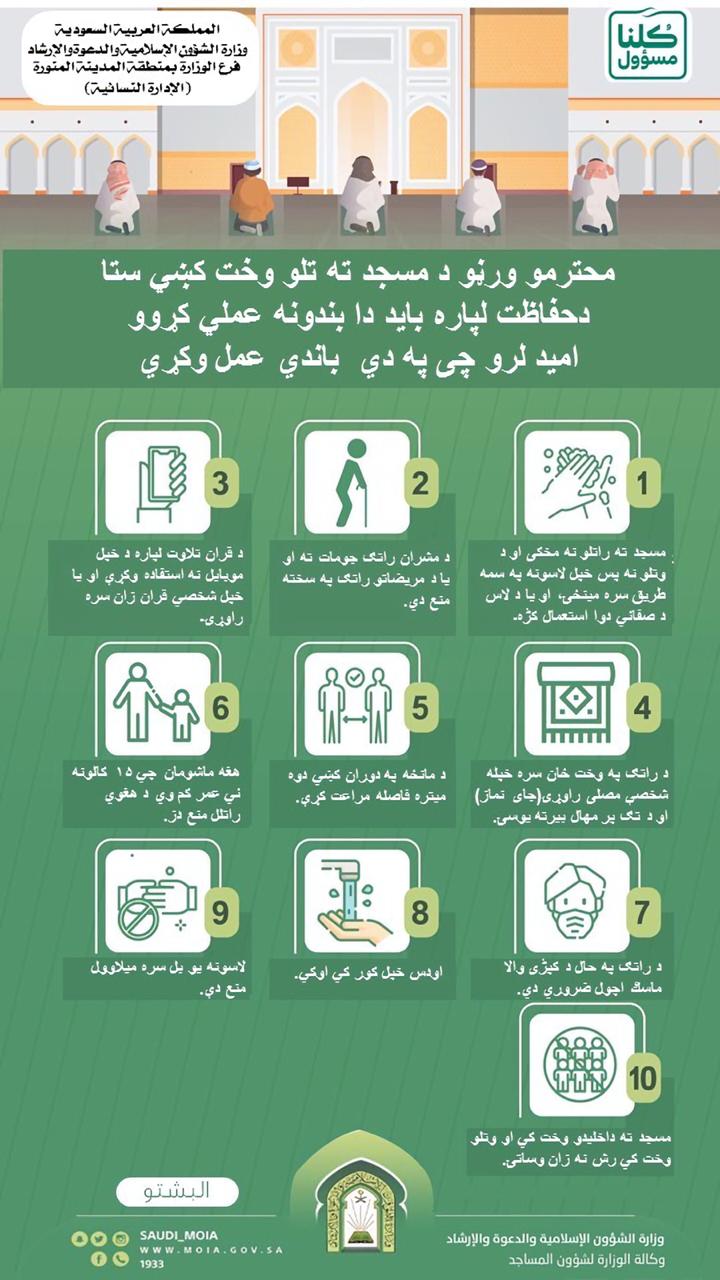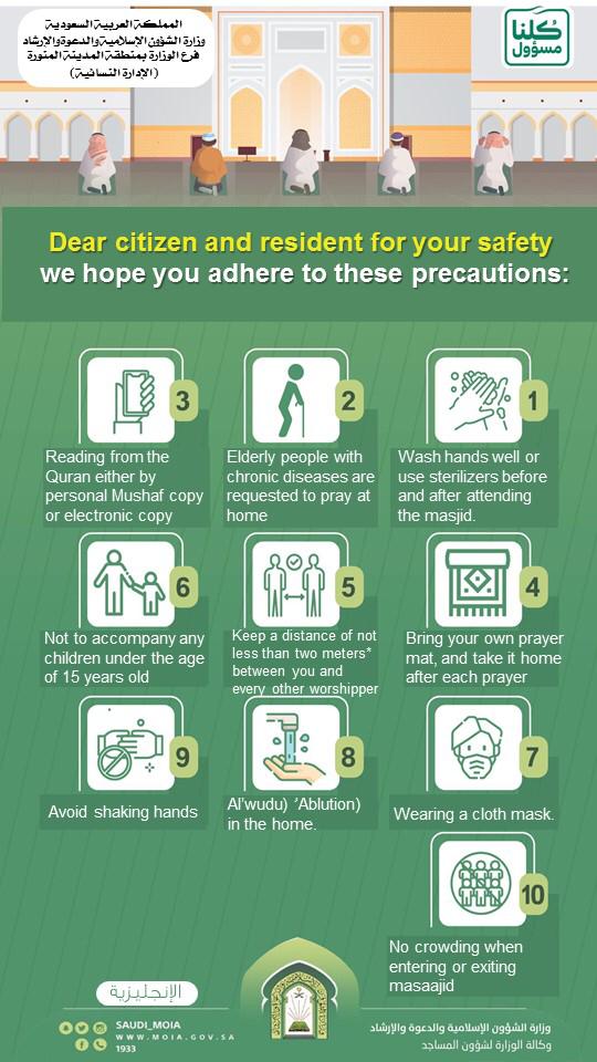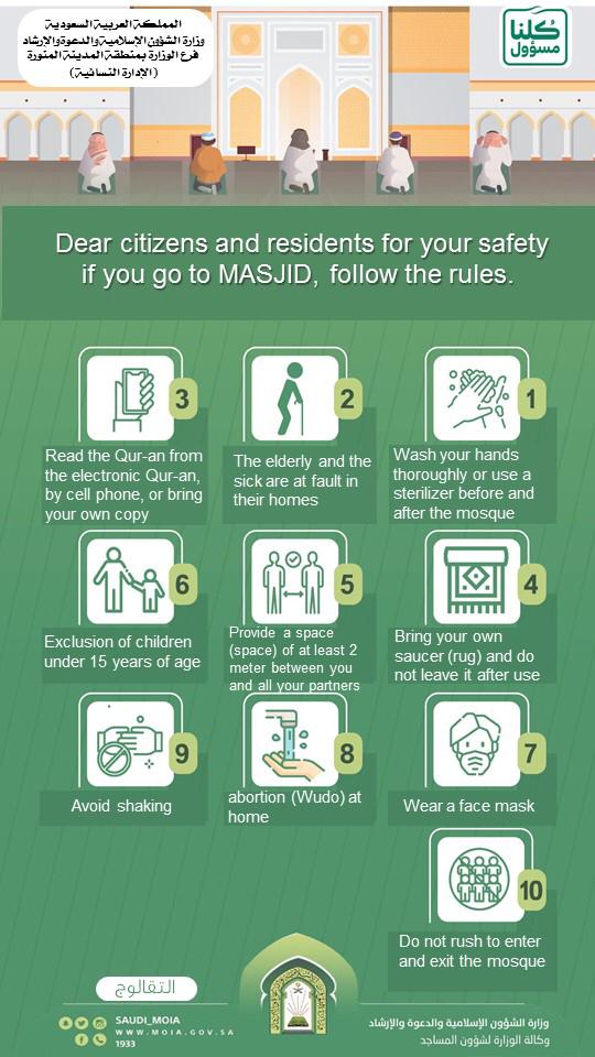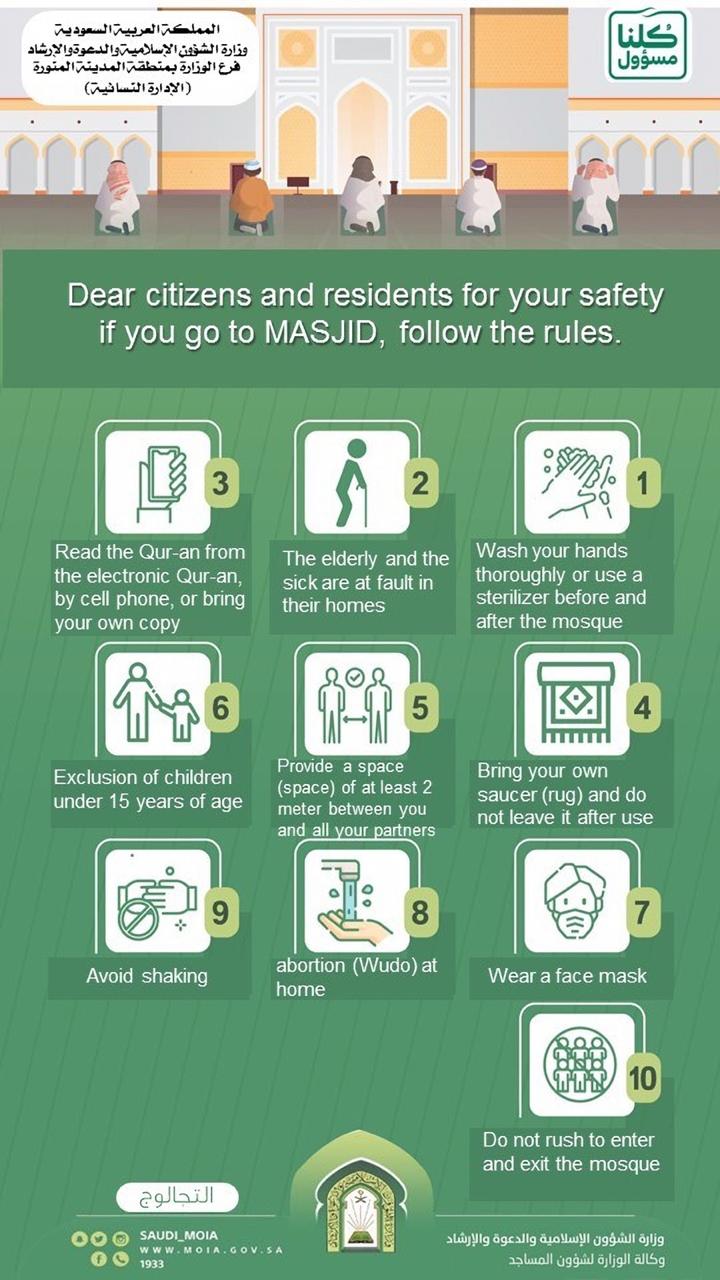 الشؤون الإسلامية بالمدينة المنورة تترجم التعليمات والإجراءات الاحترازية الخاصة بفتح المساجد بثمان لغات عالمية