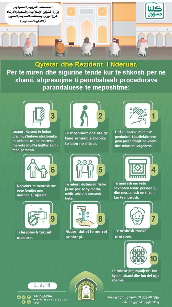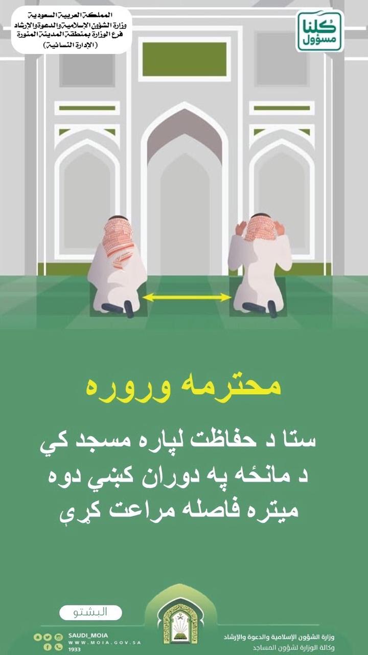 ) لجميع الأئمة في مساجد منطقة المدينة المنورة لطباعتها وتعليقها بموقع بارز بمداخل المساجد والجوامع لتعم الفائدة منها، إلى جانب بثها عبر معرفات مكاتب إدارات المساجد والدعوة وتوعية الجاليات عبر المنصات ومواقع التواصل الاجتماعي .