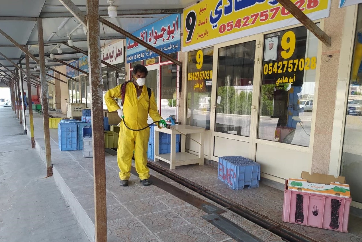 بلدية القطيف تعقم وتطهر أسواق النفع العام أثناء فترة منع التجول الكلي