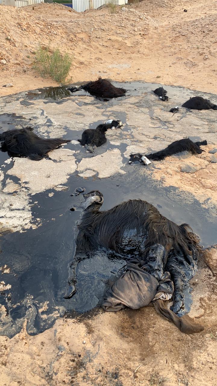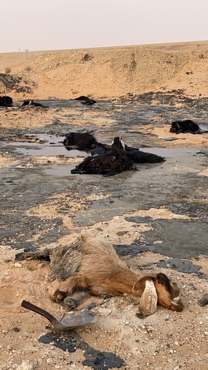 مدني حائل: احتجاز قطيع من الماشية بمادة القار في منطقة صحراوية ببقعاء