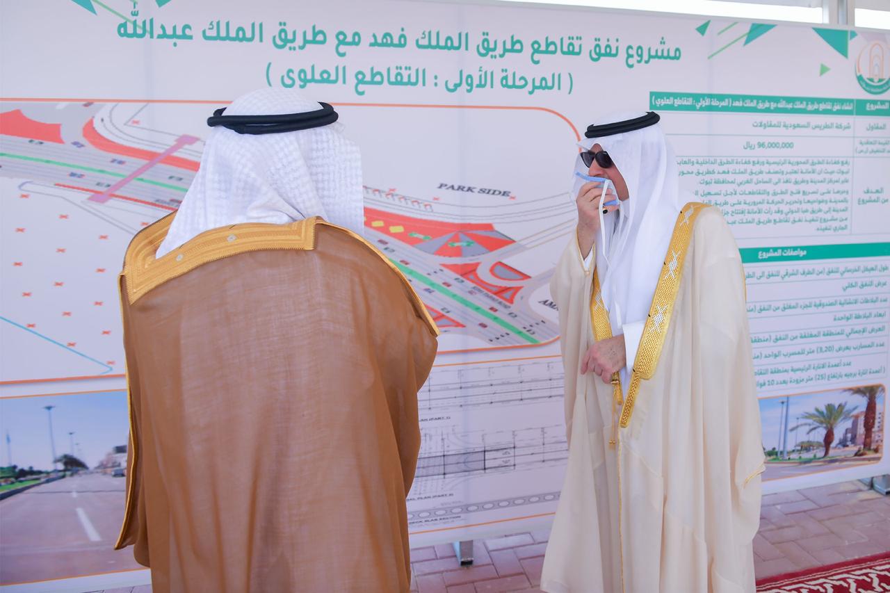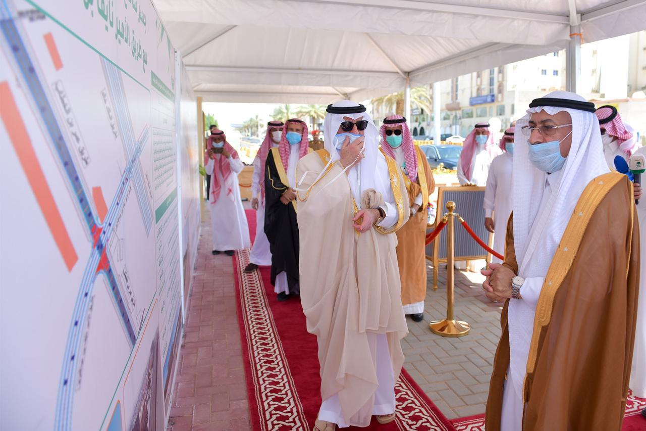 وكان في إستقبال سموه لدى وصوله مشروع نفق تقاطع طريق الملك فهد مع طريق الملك أمين منطقة تبوك المهندس فارس بن مياح الشفق .