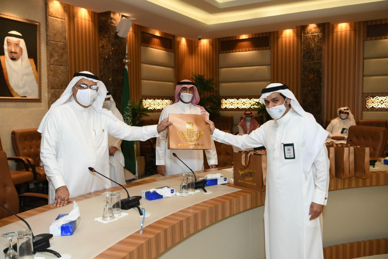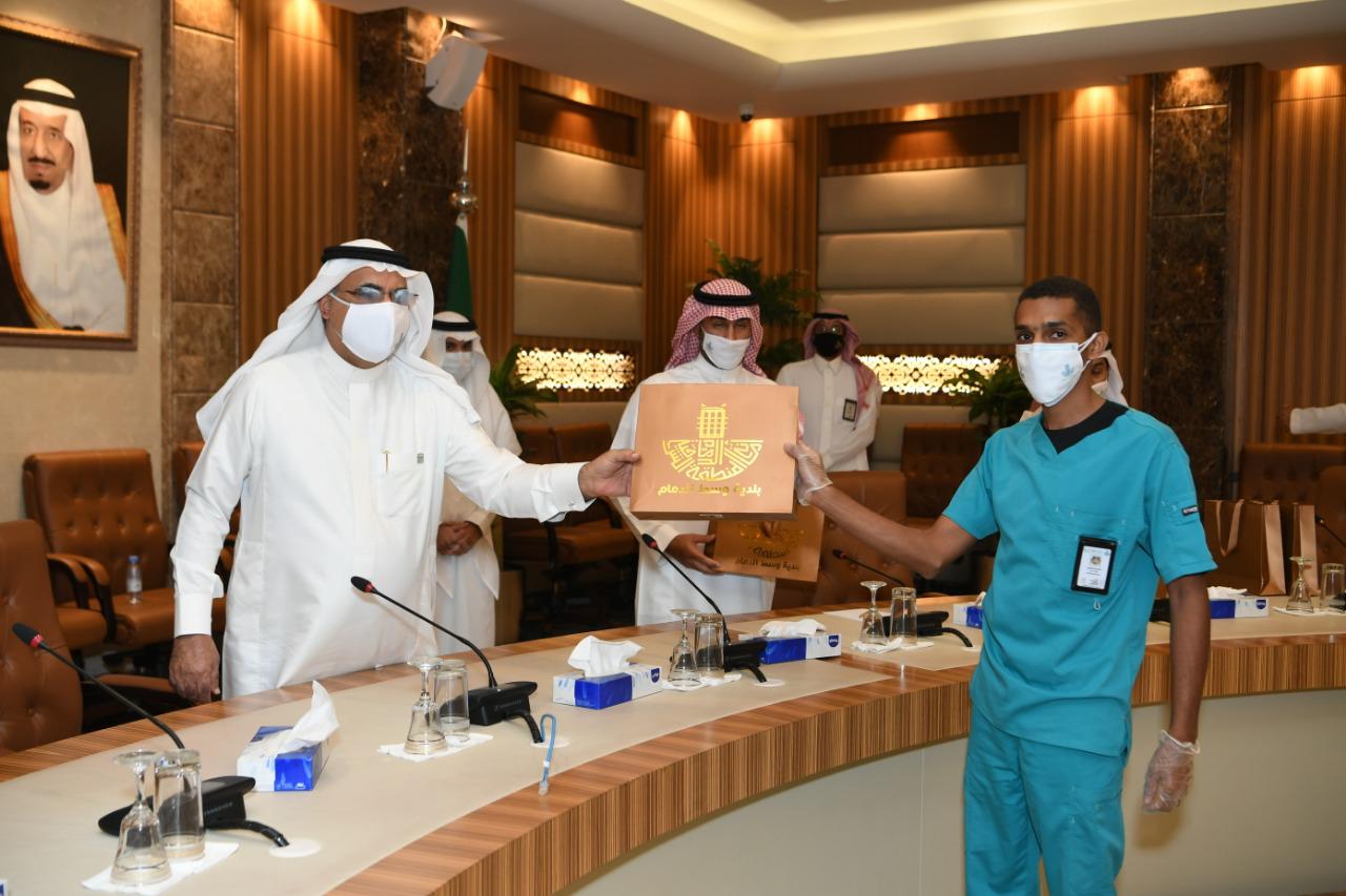 وقال الجبير في كلمة له بمناسبة التكريم لا شك أن بلدية وسط الدمام تشرف على المنطقة المركزية لمدينة الدمام والتي تتواجد فيها الكثير من المنشآت التجارية بحكم موقعها وتحتاج الى جهد مضاعف في عملية الرقابة على هذه المنشآت، وقد واجهت البلدية ومنسوبيها هذا التحدي في تحقيق نجاحات ومؤشرات عالية من خلال تطبيق افضل المعايير والطرق الاحترازية، فضلا عن المبادرات النوعية والتي حظيت بتفاعل المجتمع المحلي، بالإضافة الى ما حققته البلديات الأخرى من مجهودات وانجازات في هذه الظروف الاستثنائية، متمنيا أن يستمر هذا العطاء وأن يرفع الله هذا الوباء ويحفظ وطننا ومواطنيه، وأن يديم علينا نعمة الأمن والأمان، في ظل حكومتنا الرشيدة، بعدها قام معاليه بتكريم مدراء الادارات والمراقبين المتميزين في البلدية.