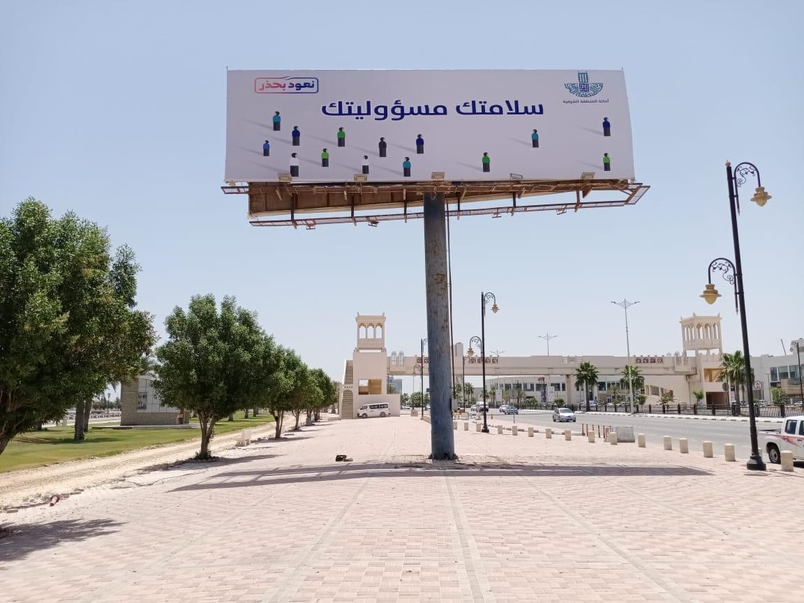 اطلقت أمانة المنطقة الشرقية الحملة التوعوية عبر اللوحات الاعلانية والالكترونية في مدن ومحافظات المنطقة الشرقية، وتأتي هذه الحملة من مبدأ حرصها على سلامة المواطنين والمقيمين من جائحة كورونا (كوفيد-١٩)، وتضمنت الحملة عدد من المفاهيم التوعوية التي تبين الاجراءات الاحترازية خلال المرحلة الأولى من العودة الى الحياة الطبيعية، وحرصت الامانة على حث المجتمع على اتباع البروتوكولات الوقائية والتباعد الاجتماعي، إضافة الى التأكيد على غسل اليدين بشكل مستمر وتغطية الأنف والفم عن الخروج من المنزل واستخدام الكمامات.