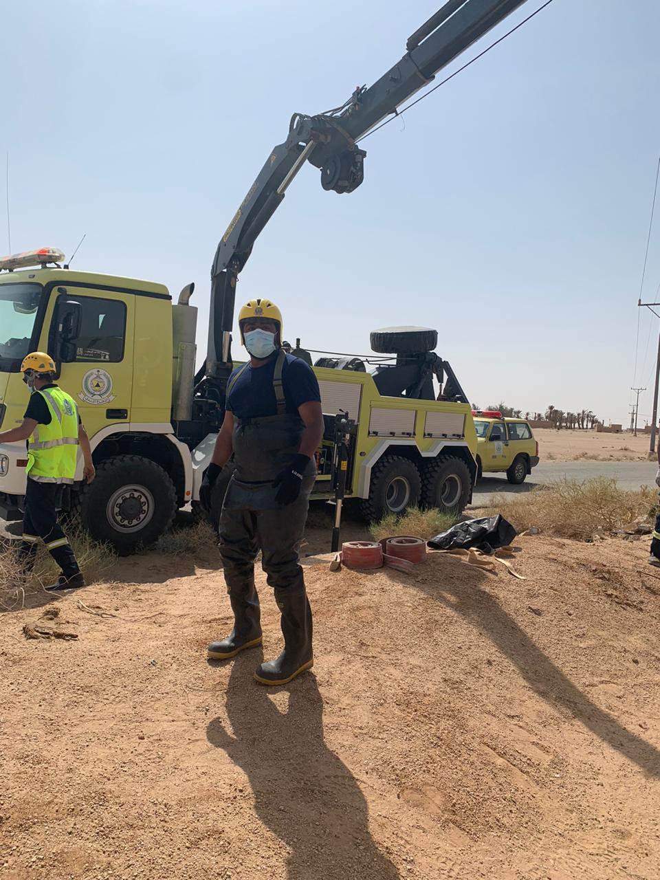 وكان مركز التحكم والتوجيه بمدني الرس قد تلقى بلاغاً عن الحادث في الساعة (8:30) فتم انتقال الفرق للموقع ومباشرة الحادث واخراج الناقة وتسليمها لصاحبها.