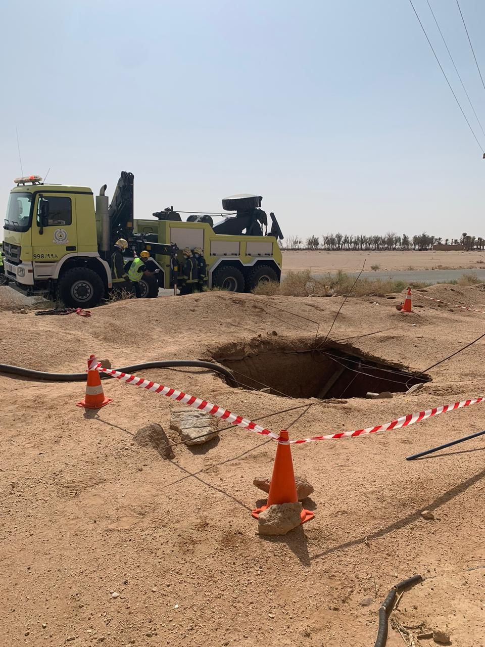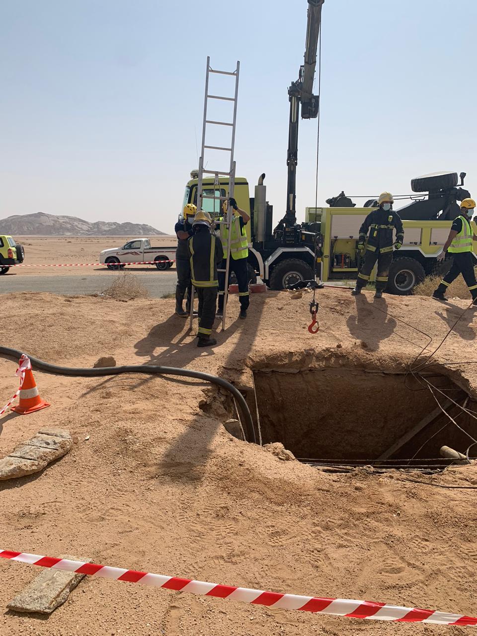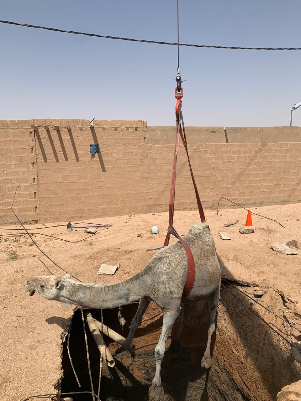 تدخلت فرق الدفاع المدني بمحافظة الرس لإنقاذ ناقة سقطت في خزان صرف صحي بعمق 4 متر في بلدة حليسة.