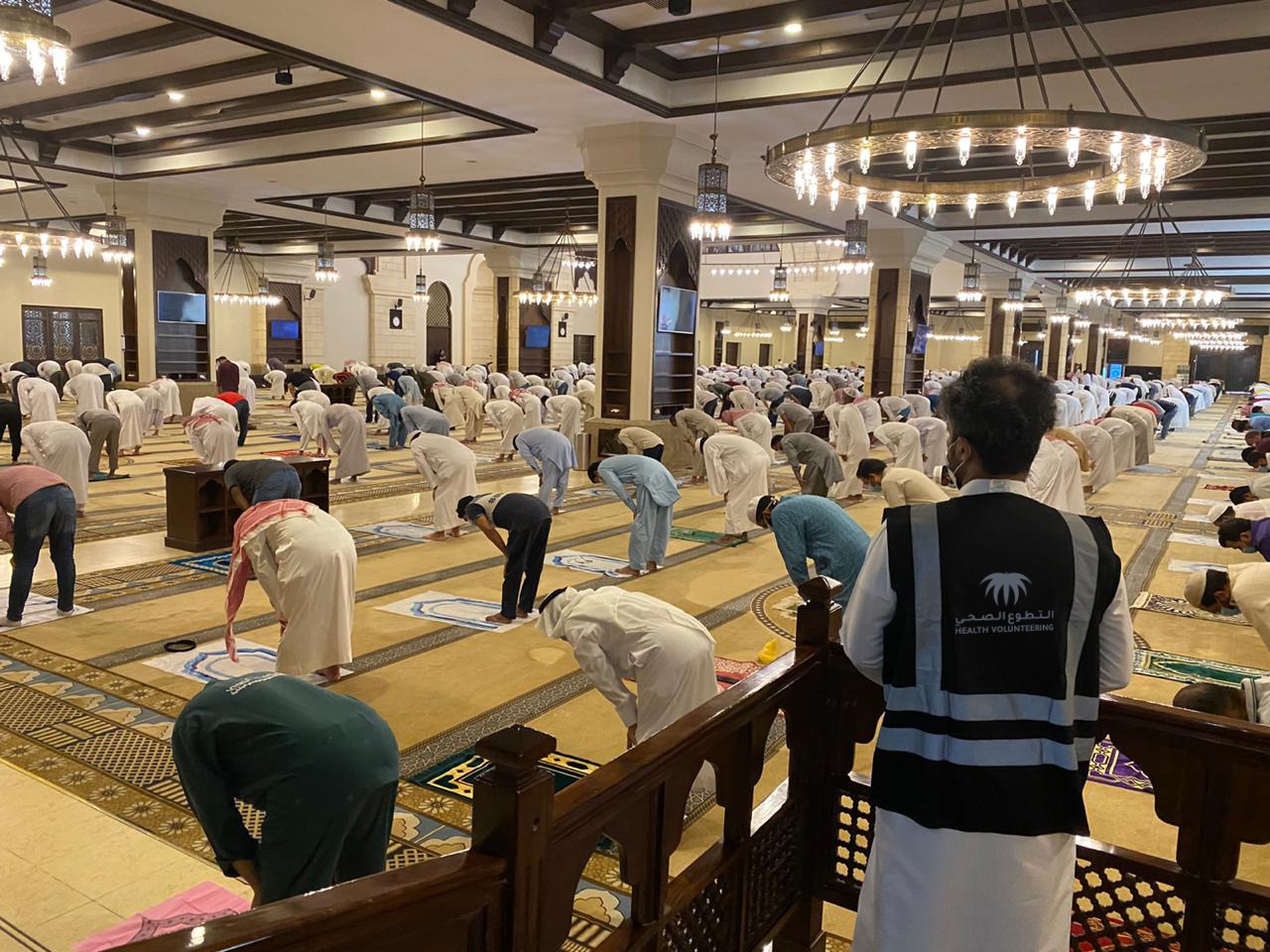 شارك في انطلاقة الحملة 1,500 متطوع، بأكثر من 250 جامع حول مدن المملكة المختلفة، بإجمالي 3,000 ساعة تطوعية. وعملوا على توعية المصلين بضرورة الالتزام بالاحتياطات الوقائية للمرحلة، من الالتزام بالتباعد الاجتماعي، واستخدام السجادة الخاصة في جميع الصلوات، ومداومة لبس الكمامة، وعدم تكدس المصلين، مع التأكيد على الفئات الأكثر عرضة للإصابة بتجنب الازدحام والخروج من المنزل.