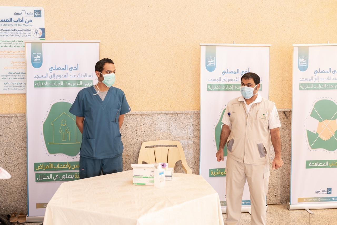 وأسهمت صحة حفر الباطن والفرق التطوعية بنشر التوعية وطرق الوقاية والسلامة أثناء فريضة الصلاة وتوعية المصلين بضرورة الالتزام بالاحتياطات الوقائية من الالتزام بالتباعد الجسدي، واستخدام السجادة الخاصة في جميع الصلوات، ومداومة لبس الكمامة، وعدم تكدس المصلين.