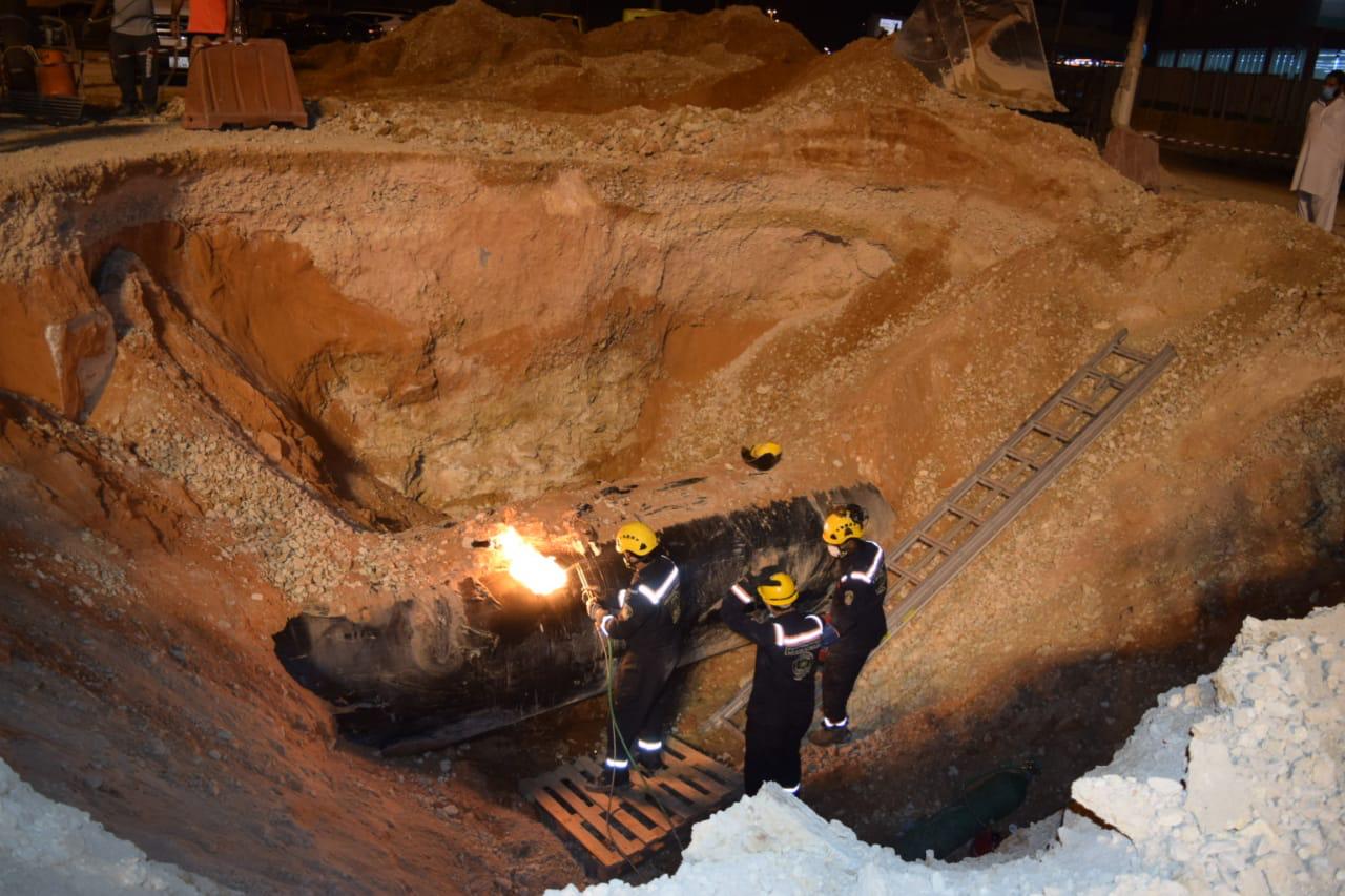 اوضح المتحدث الاعلامي للدفاع المدني بمنطقة الرياض المقدم محمد الحمادي ، أن مركز التحكم و التوجيه بالادارة العامه للدفاع المدني بمدينة الرياض تلقى بلاغاً الساعة 9:30 من مساء يوم الاربعاء الموافق 1441/10/18هـ يفيد بفقدان ستة أشخاص في أنبوب مياه تحت الإنشاء يبلغ طوله 400 متر تقريبا وقطره متر واحد ضمن مشروع بحي العزيزية وبوصول فرق الدفاع المدني للموقع تبين ان المفقودين هم من العاملين في الشركة المنفذة للمشروع ، كانوا يقومون باعمال داخل الانبوب ولم يتمكنوا من الخروج مع فقدان التواصل مع زملائهم في الخارج ، لتعمل فرق الدفاع المدني على البحث و العثور عليهم في مسافة ٣٦٠ متر تقريبا وهم فاقدين الوعي ومحتجزين ليتم أخراجهم بأستحداث فتحات في الانبوب بواسطة معدات وتجهيزات الدفاع المدني لمثل هذه الحوادث.