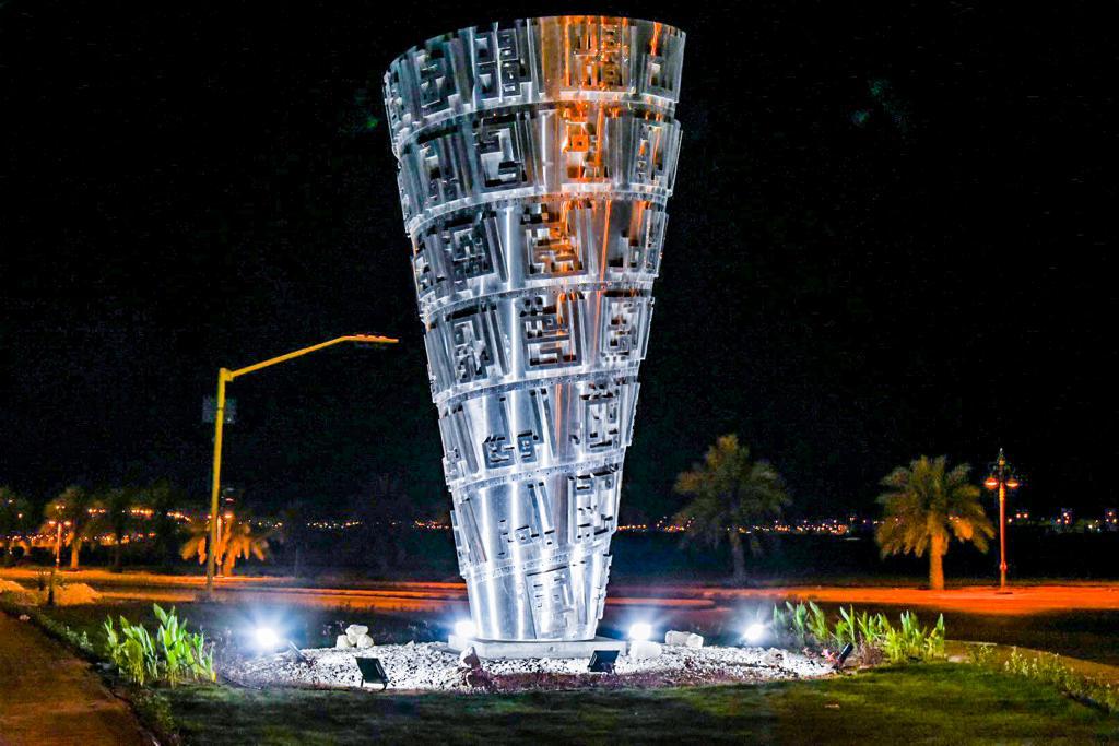 دشنت بلدية محافظة بقيق المجسم الجمالي بالمدخل الجنوبي بالمحافظة .