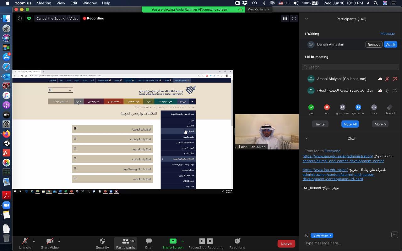 من جانبها ذكرت الدكتوره أماني البحر مديرة مركز الخريجين والتنمية المهنية عن الخدمات التي يقدمها المركز بشكل واسع ومفصل شملت فيه تقديم المركز للعديد من الاستشارات المهنية التي تساعد الخريج في تنمية مهاراته لسوق العمل ثم تحدثت عن احتياجات سوق العمل واحتياجاته وعن مستوى التوظيف العالي الذي تحرص عليه الجامعه تماشيًا مع رؤية المملكة ٢٠٣٠ ، و حضر اللقاء مجموعة من خريجي الجامعة في كلية طب الاسنان وأيضًا من المبتعثين خارج المملكة مثل كندا والولايات المتحدة الامريكية.