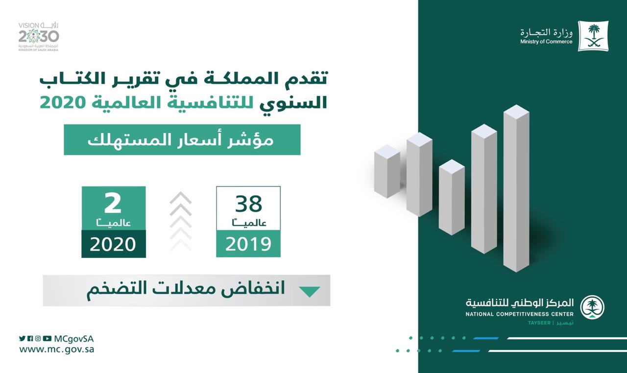 وأحرزت المملكة تقدماً استثنائياً غير مسبوق رغم الظروف الاقتصادية الناتجة عن آثار جائحة كورونا حيث حقق مؤشر أسعار المستهلك قفزة من المرتبة 38 عالمياً للعام 2019 إلى المرتبة الثانية عالمياً في 2020، وذلك بفضل انخفاض معدلات التضخم.