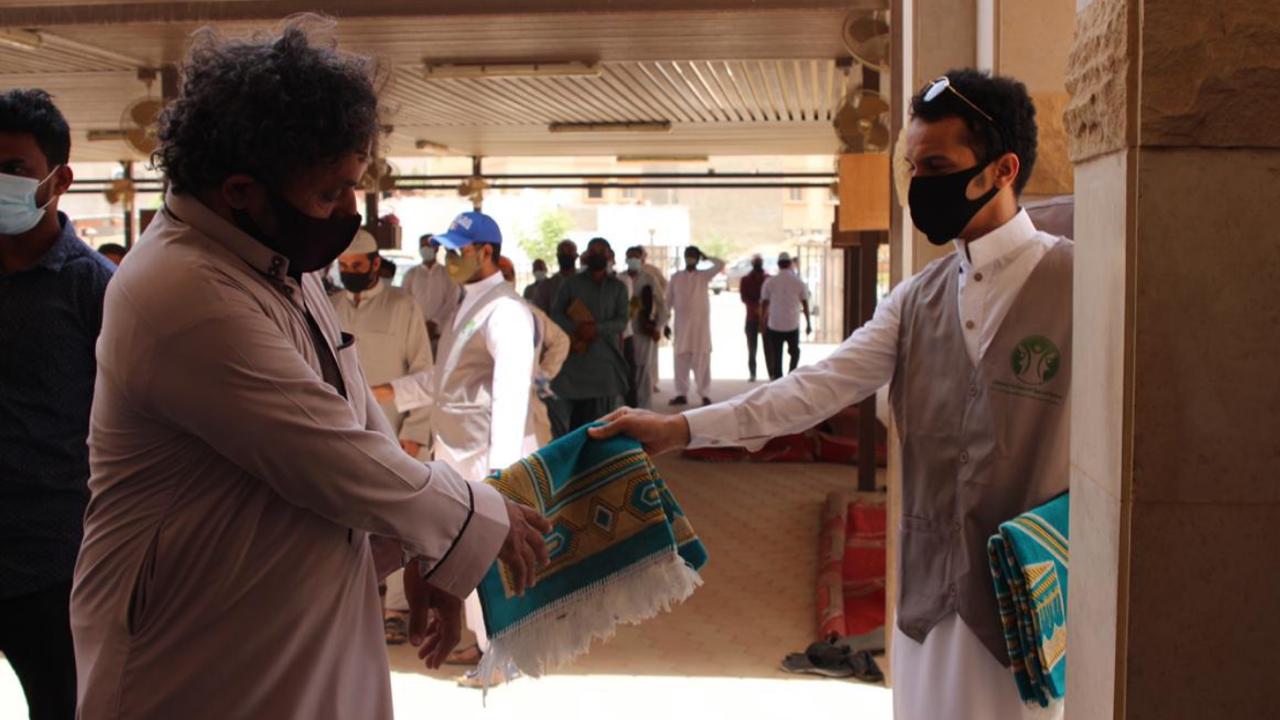 وتلخصت مهمة الفريق في الكشف البصري وقياس درجات الحرارة والتأكد من اتباع المصلين للإحترازات والإجراءات الوقائية من فيروس كورونا والقيام بتوزيع مستلزمات الوقاية من كمامات وسجادات وقلفزات