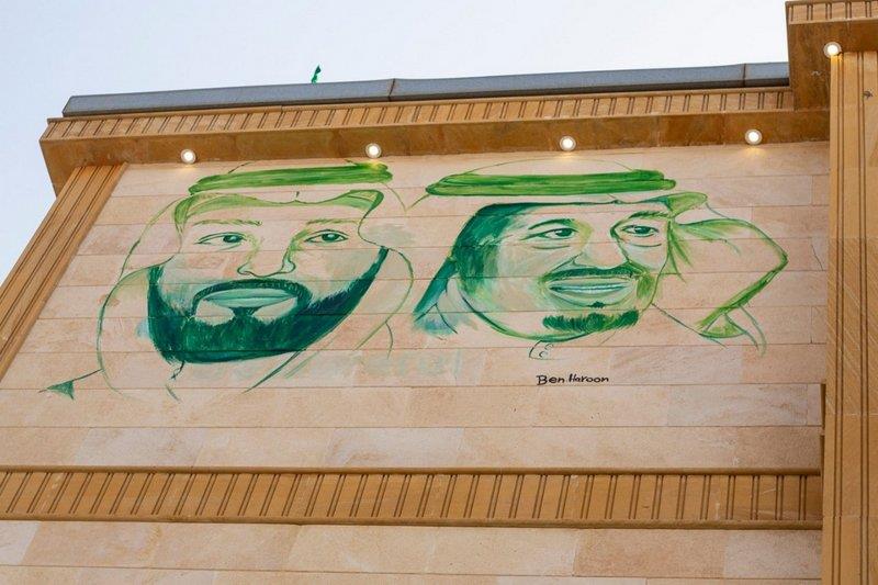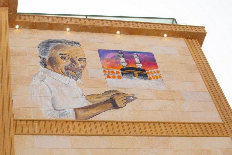 وأظهرت صور رسم لوحات لخادم الحرمين الشريفين الملك سلمان بن عبدالعزيز وولي العهد الأمير محمد بن سلمان، وأمير منطقة مكة المكرمة الأمير خالد الفيصل، على الجدران الخارجية للمنزل، كما تم رسم بعض اللوحات التوعوية للوقاية من الفيروس، إلى جانب وضع كمامة على مقدمة سيارته للتوعية بأهمية لبسها.
