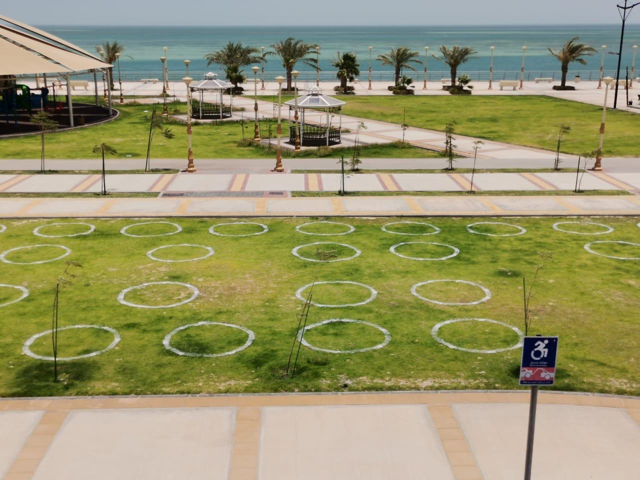 ويهدف هذا الإجراء إلى تحديد مسافة آمنة بين الأشخاص وتحقيق التباعد الاجتماعي الآمن، وذلك ضمن خطة رفع منع التجول الكامل، وعودة الحياة الطبيعية، للمساعدة على الحد من انتشار فيروس كورونا وتقليل خطر الإصابة به قدر الإمكان، كما يأتي ضمن الإجراءات التي تنفذها الأمانة لتهيئة المرافق العامة ومن ضمنها الكورنيشات والواجهات البحرية والحدائق العامة والمنتزهات.