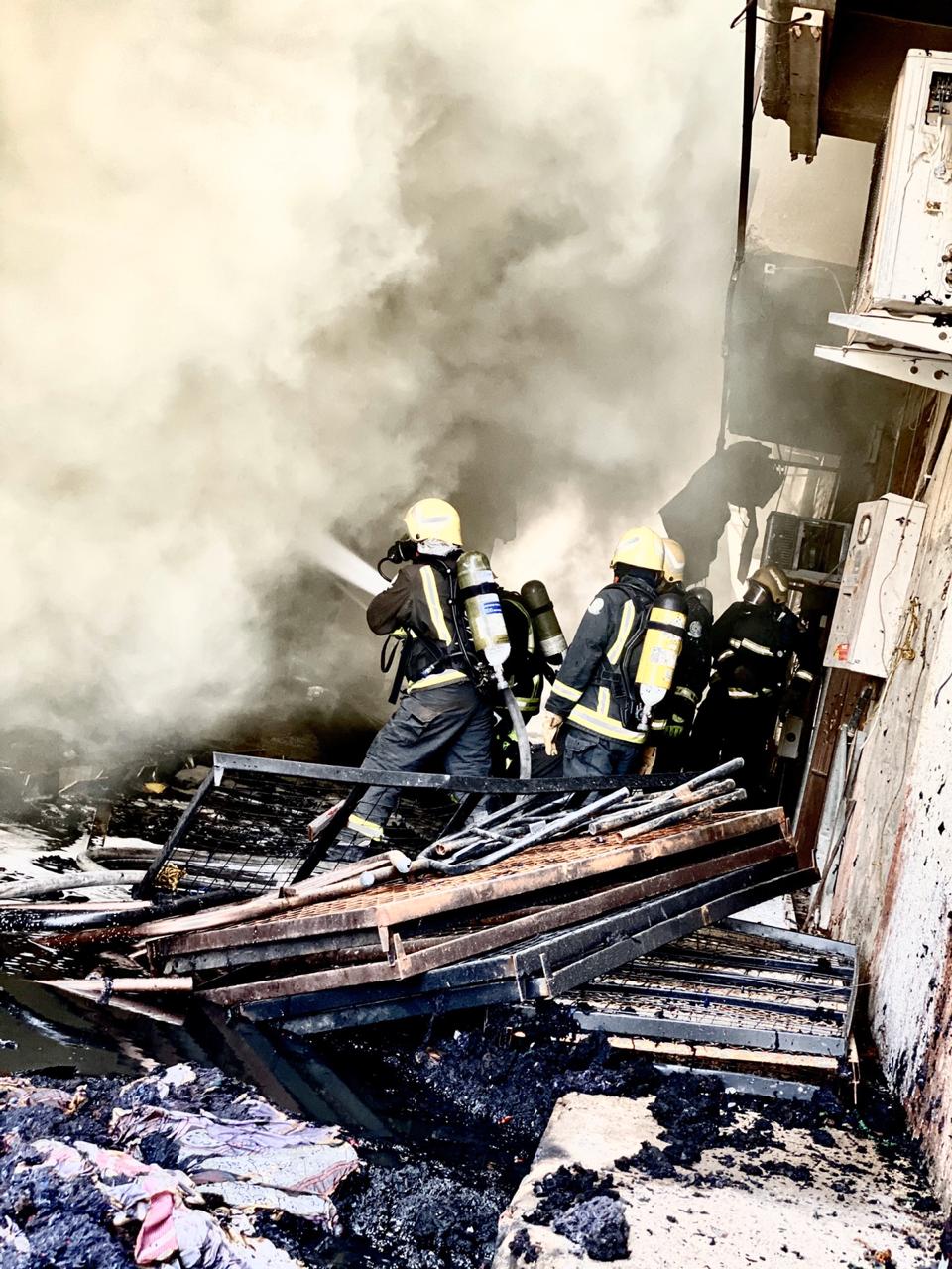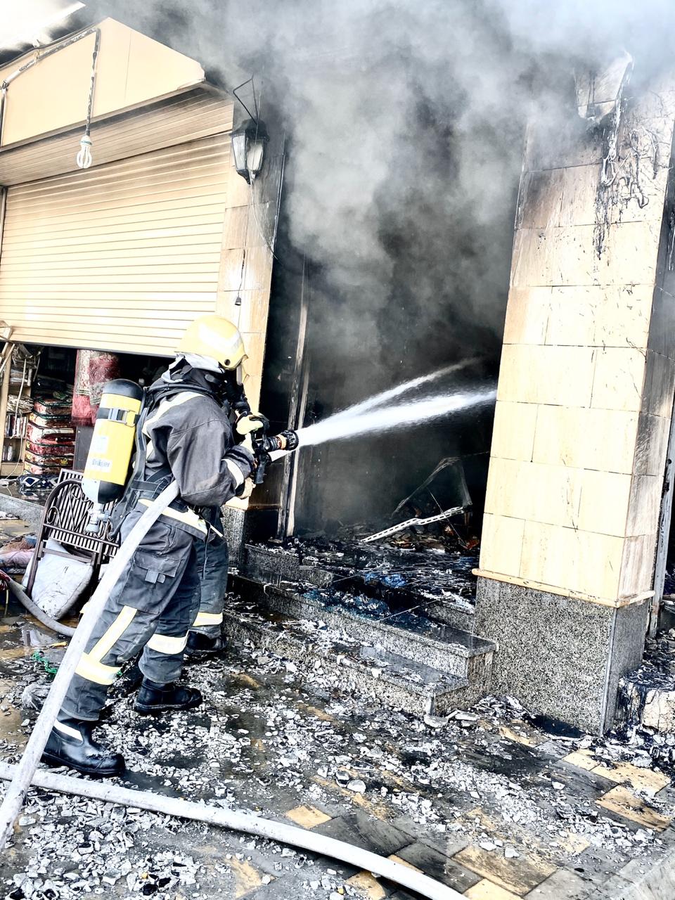 الدفاع المدني ببريدة يباشر حادث احتراق 3 محلات مفروشات وسط المدينة