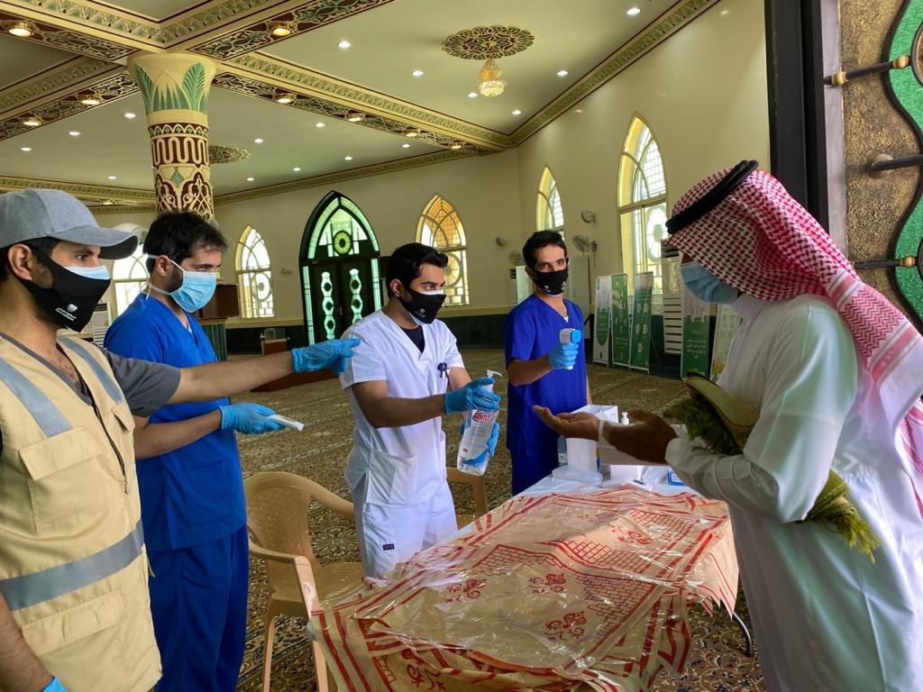 تواصل صحة حفر الباطن حملة التطوع الصحي لتوعية المصلين استمراراً للحملات التوعوية والوقائية تحت شعار ( نعود بحذر) بمشاركة 56 متطوعاً في 15جامعاً وذلك بالتنسيق مع إدارة المساجد والدعوة والإرشاد بالمحافظة حيث نظمت الفرق التطوعية دخول المصلين والفرز البصري وقدمت لهم النصائح والإرشادات بأتباع الاشتراطات الصحية المتبعة مثل ارتداء الكمامة القماشية، وإحضار سجادة للاستخدام الشخصي إلى جانب التنويه بأهمية غسل اليدين أو تعقيمها قبل وبعد زيارة المسجد مع الالتزام بالتباعد الجسدي بمسافة لا تقل عن مترين وتأتي هذه الحملات التوعوية ضمن الإجراءات الاحترازية والوقائية التي تنظمها صحة حفر الباطن للحد من انتشار فايروس كورونا المستجد”COVID-19″حفاظاً على المصلين وسلامة عائلاتهم