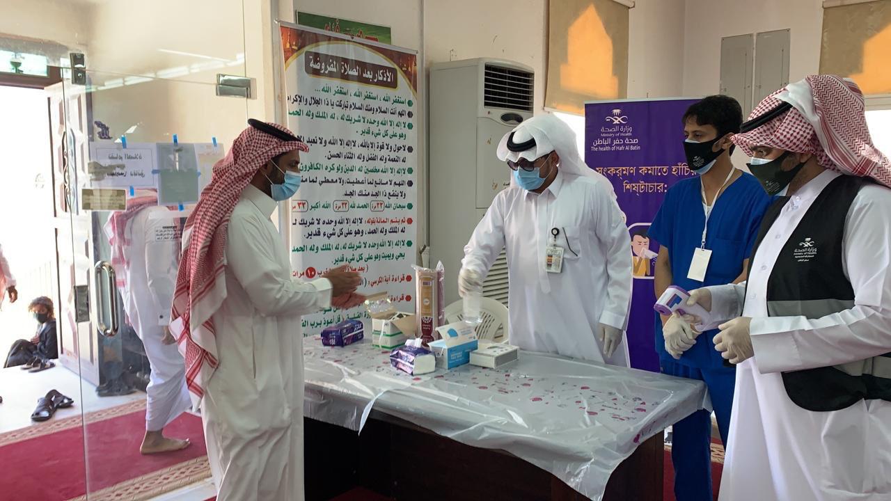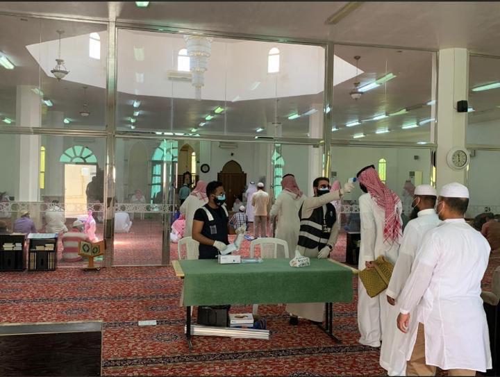 تواصل صحة حفر الباطن حملة التطوع الصحي لتوعية المصلين استمراراً للحملات التوعوية والوقائية تحت شعار ( نعود بحذر) بمشاركة 56 متطوعاً في 15جامعاً وذلك بالتنسيق مع إدارة المساجد والدعوة والإرشاد بالمحافظة حيث نظمت الفرق التطوعية دخول المصلين والفرز البصري وقدمت لهم النصائح والإرشادات بأتباع الاشتراطات الصحية المتبعة مثل ارتداء الكمامة القماشية، وإحضار سجادة للاستخدام الشخصي إلى جانب التنويه بأهمية غسل اليدين أو تعقيمها قبل وبعد زيارة المسجد مع الالتزام بالتباعد الجسدي بمسافة لا تقل عن مترين وتأتي هذه الحملات التوعوية ضمن الإجراءات الاحترازية والوقائية التي تنظمها صحة حفر الباطن للحد من انتشار فايروس كورونا المستجد”COVID-19″حفاظاً على المصلين وسلامة عائلاتهم