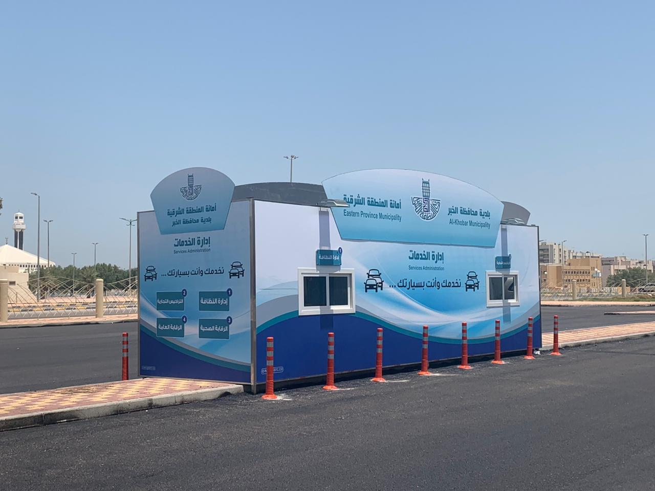 وأوضح رئيس بلدية محافظة الخبر المهندس سلطان بن حامد الزايدي بأن هذه المبادرة تأتي ضمن حرص بلدية الخبر على تسهيل إنجاز معاملات المستفيدين وتحسين جودة العمل وتطويره وتقديم أفضل الخدمات البلدية لهم دون الحاجة الى من السيارة وذلك حفاظًا على صحتهم وسلامتهم ، حيث تم تجهيز كبينة مجهزة بكافة الأجهزة والاحتياجات اللازمة لأتمام العمل في ساحة المواقف المحاذية لمبنى إدارة الخدمات تتضمن 4 نوافذ لتقديم الخدمات التابعة لكل من ادارة التراخيص التجارية , إدارة النظافة ، الرقابة الصحية ، الرقابة العامة ، حيث تم تخصيص نافذة لكل ادارة .