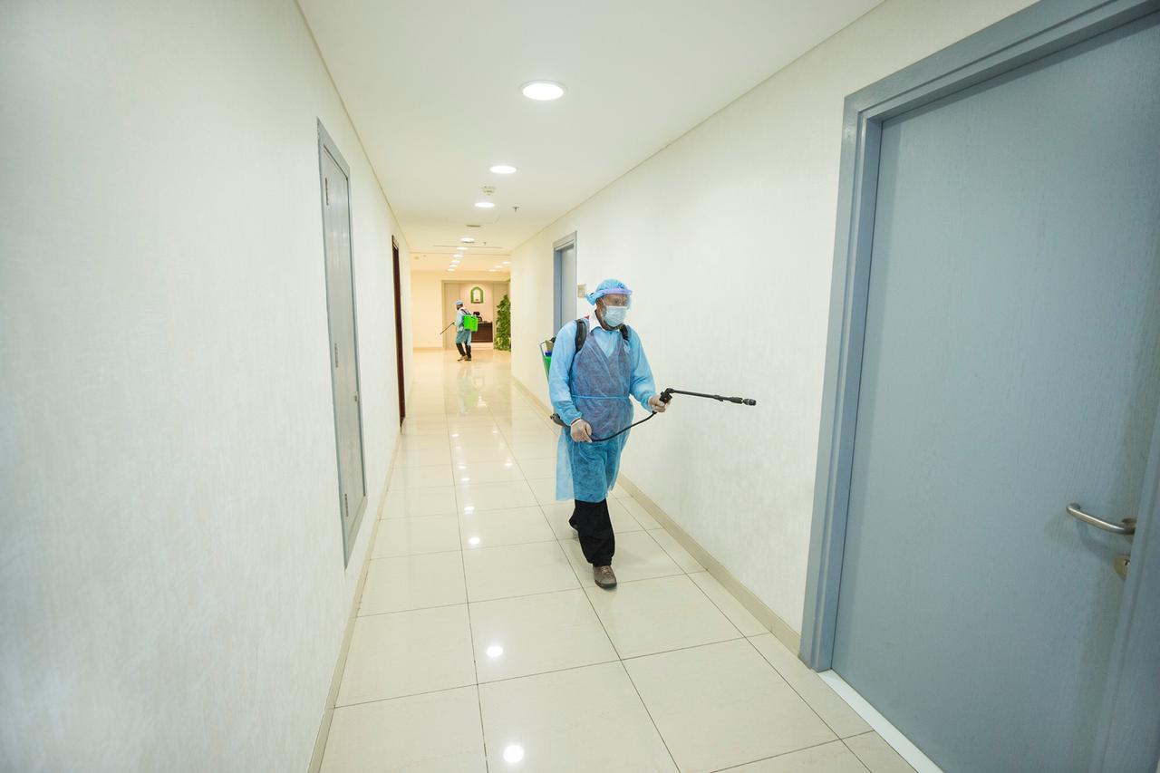 ونوعت الوزارة وسائل التوعية عبر الشاشات الإلكترونية واللوحات الإرشادية المتوزعة في مقار العمل والممرات والمصاعد بديوان الوزارة وفروعها، إلى جانب القيام بجولات بمقار العمل على الموظفين للتأكد من تنفيذ كافة التعليمات والتوجيهات والالتزام بالتباعد وتعقيم اليدين وارتداء الكمامات، وذلك لضمان السلامة وممارسة الأعمال المكتبية في بيئة عمل آمنة.