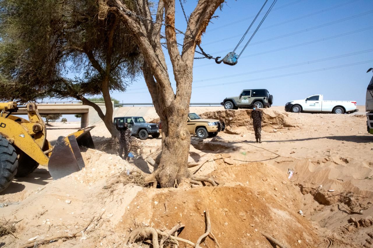 استجابت القوات الخاصة للأمن البيئي لطلب إنقاذ شجرة معمرة من أشجار الطلح بالقرب من الثمامة بمدينة الرياض، حيث تمكنت وبمشاركة الجهات المعنية بوزارة البيئة والمياه والزراعة من إعادة الشجرة المعمرة لموقعها بعد سقوطها خلال الفترة الماضية بسبب السيول والرياح.