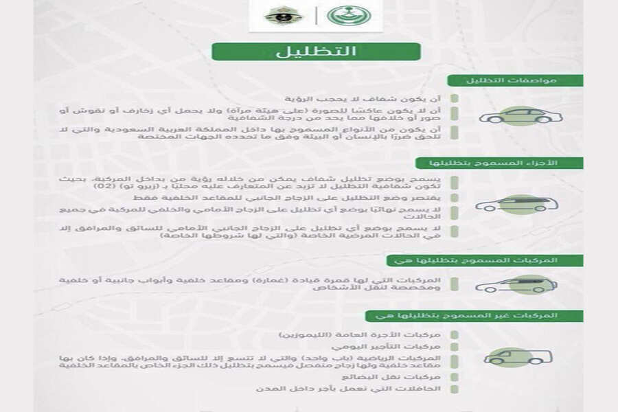بالتفاصيل.. ضوابط ومواصفات تظليل المركبات.. المسموح والممنوع