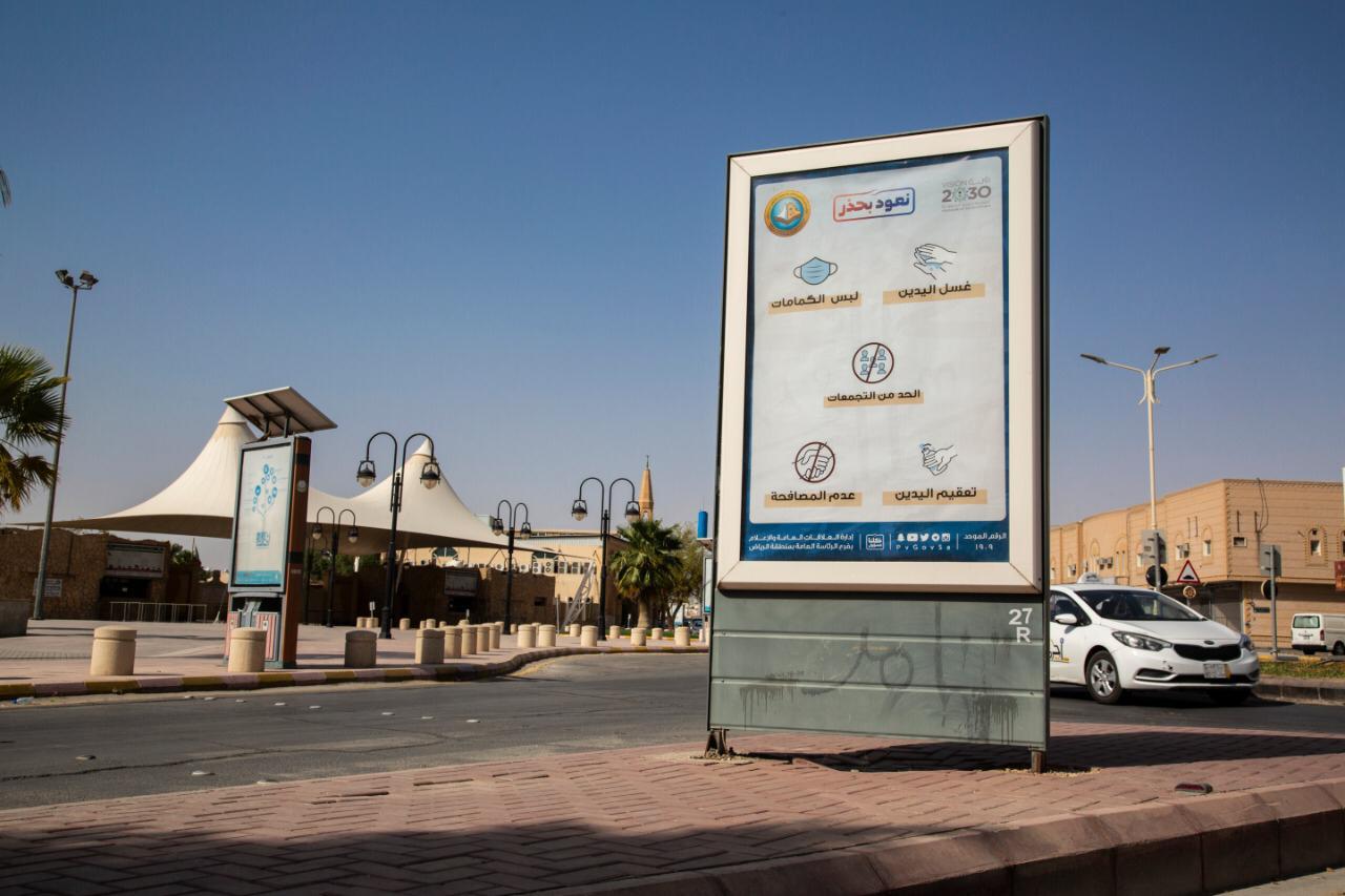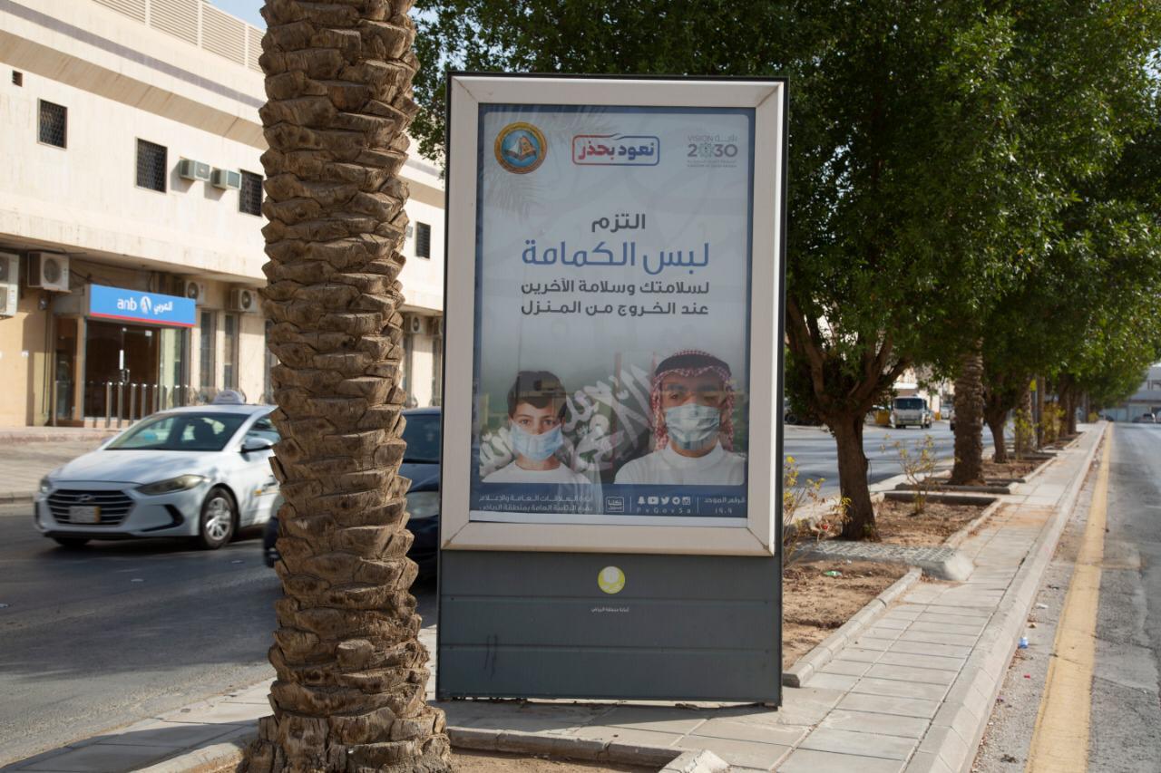 وتضمنت اللوحات رسائل توعوية ووقائية للالتزام بالاحترازات الوقائية لدرء جائحة كورونا والتخفيف من آثارها .