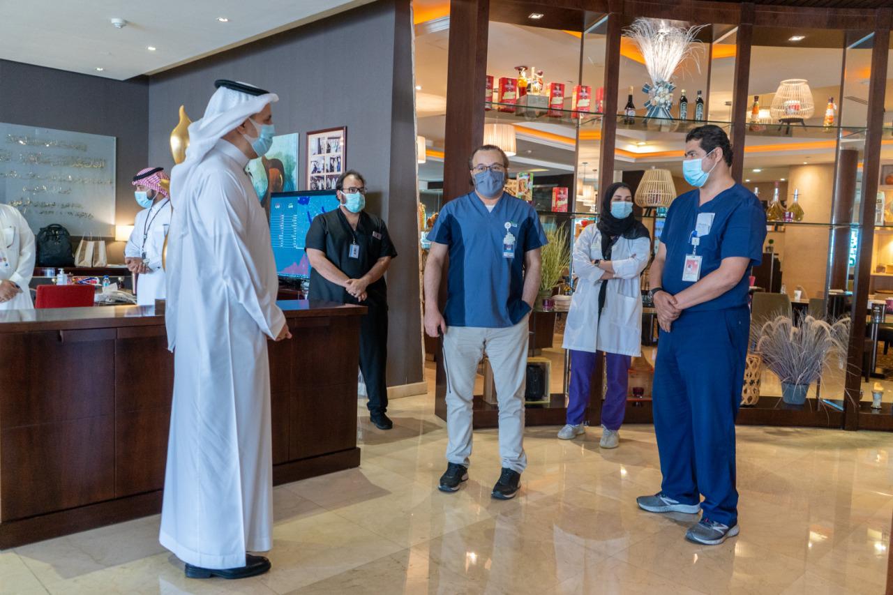 ووضح الرئيس التنفيذي للتجمع الصحي الأول بالمنطقة الشرقية د. عبدالعزيز الغامدي: تأتي فكرة المستشفيات الميدانية بطاقات استيعابية كبيرة للمساهمة في تخفيف الضغط على المستشفيات في هذه الجائحة العالمية، وكانت توجيهات وزارة الصحة بإيجاد المواقع المناسبة والموافقة مع الاشتراطات لإطلاق المستشفيات الميدانية، وتم إختيار هذا المستشفى المصغر في احد فنادق مدينة الخبر بناءً على كونه مؤهل من ناحية التخطيط والسلامة، ونجح أبطال التجمع الصحي الأول بالمنطقة الشرقية في تجهيز هذا الموقع ودعمه بكوادر طبية على أعلى مستوى.