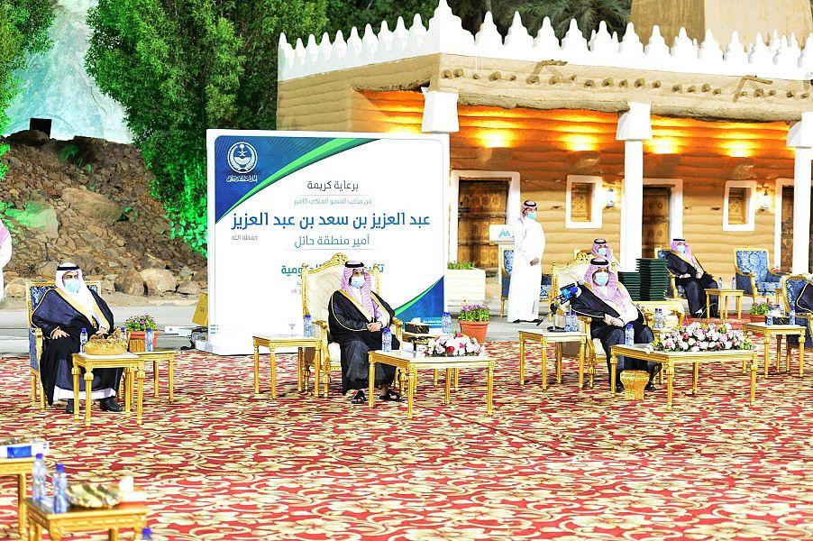 وفي ختام الحفل كرم أمير منطقة حائل الجهات كافة المشاركة في التصدي لجائحة كورونا (كوفيد 19).