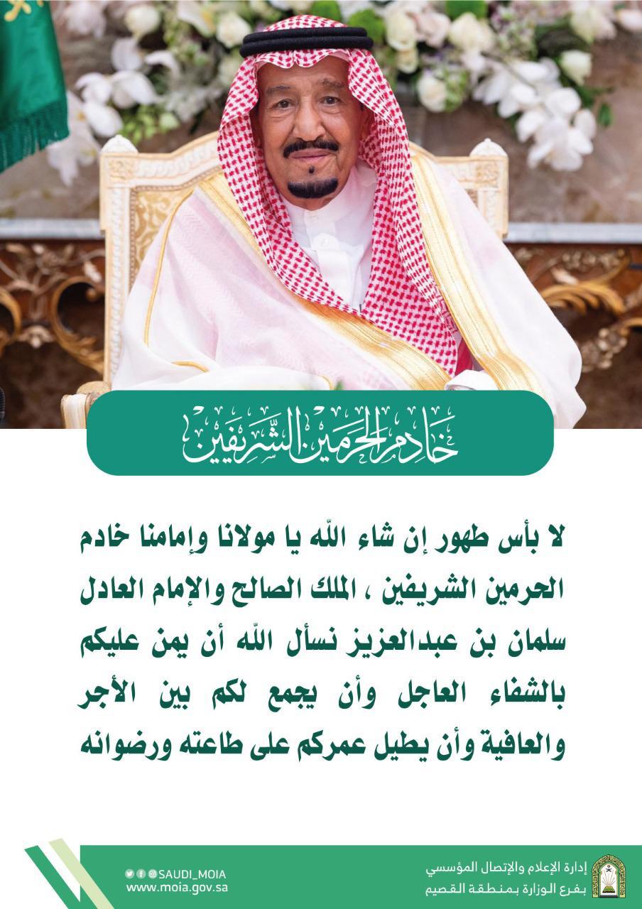 وتضمنت اللوحات والبروشورات المنشورة كلمات ودعاء موجه للمولي -عز وجل- بأن يشفي خادم الحرمين الشريفين الملك سلمان – يحفظه الله – شفاءً لا يُغادر سقما، وأن يُطيل في عمره على طاعته، وأن يجمع له بين الأجر والعافية.