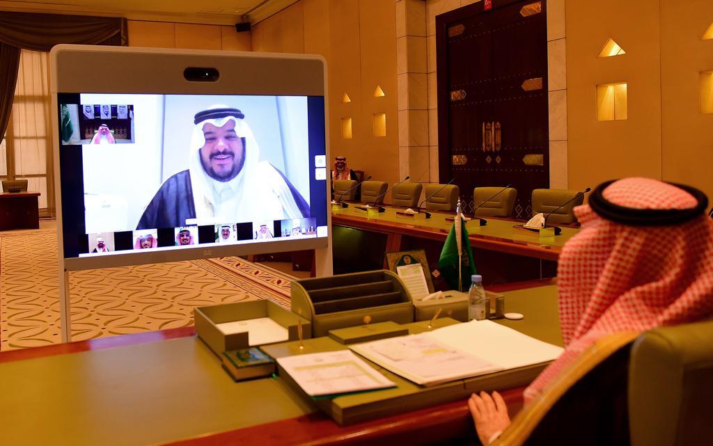 رأس صاحب السمو الملكي الأمير فيصل بن بندر بن عبدالعزيز أمير منطقة الرياض بمشاركة صاحب السمو الملكي الأمير محمد بن عبدالرحمن بن عبدالعزيز نائب أمير المنطقة بقصر الحكم اليوم عبر الاتصال المرئي الاجتماع الأول لمحافظي المنطقة للعام المالي 1441- 1442هـ .
