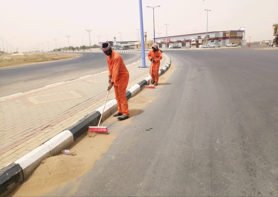 وتجنّد الآليات والمعدات لمواجهة ومنع تجمع الأتربة والعمل بصورة يومية للحد من ذلك، والعمل على إزالتها من جنبات الطرقات ووسطها.