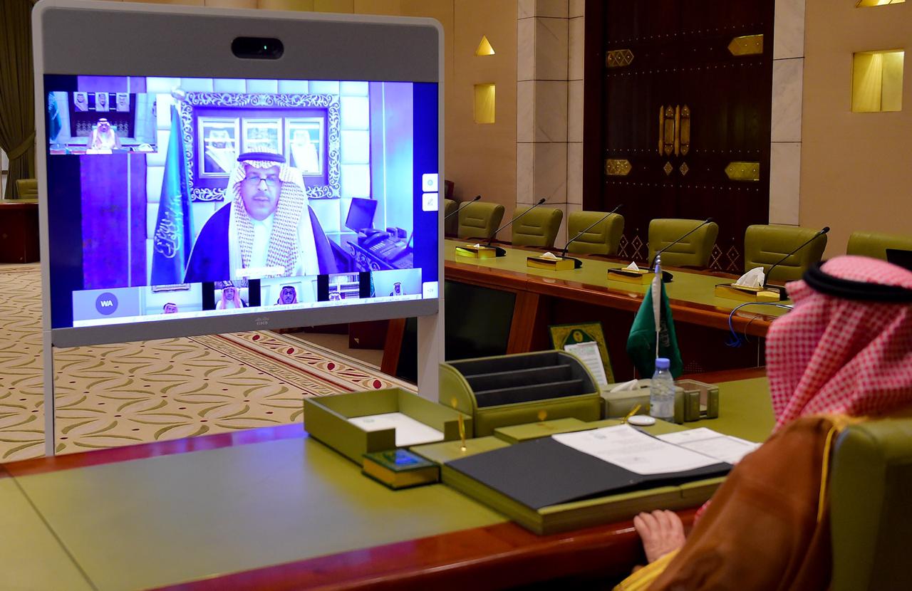 وقد استهل سموه الكريم الاجتماع بصادق الدعوات على سلامة خادم الحرمين الشريفين الملك سلمان بن عبدالعزيز آل سعود ــ رعاه الله ــ سائلاً الله العلي القدير أن يمن عليه بالشفاء العاجل وأن يمده بالصحة والعافية ويحفظه من كل مكروه ، كما أثنى سموه على ما قامت به حكومة خادم الحرمين الشريفين من إجراءات استثنائية استجابة لهذه الظروف سواء على الجانب الصحي أو التدابير الاقتصادية للتخفيف من آثار جائحة كورونا .