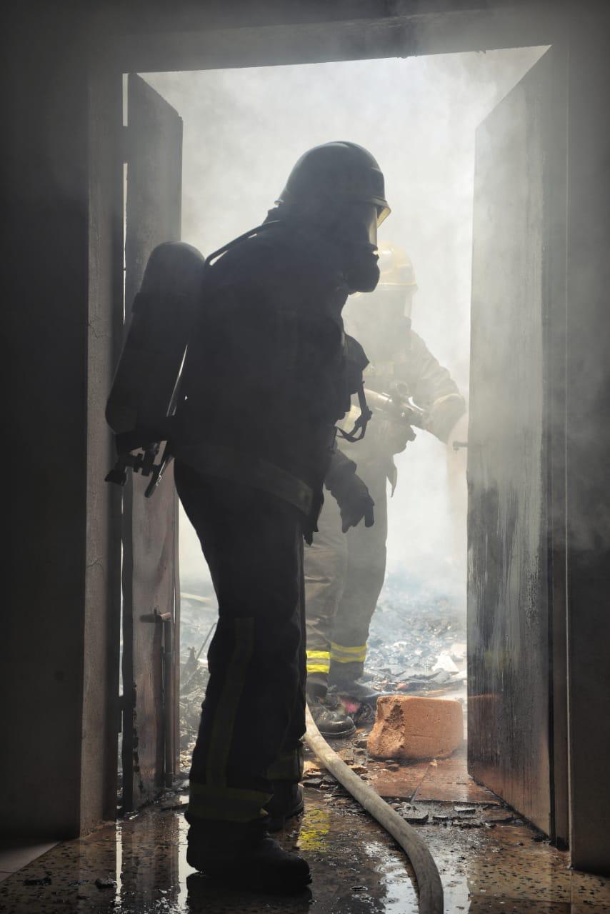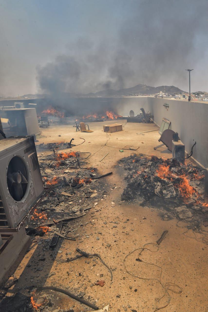 ومباشرة أعمال إخماد الحريق الذي انحصر على منطقة السطح في مجموعة من الأوراق ومخلفات رجيع الأثاث ولم يصب أحد بأذى جراء الحادث ولله الحمد .