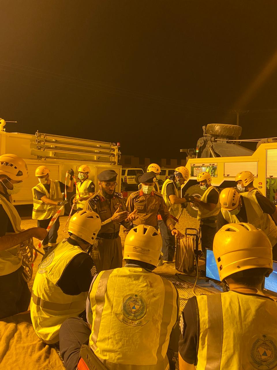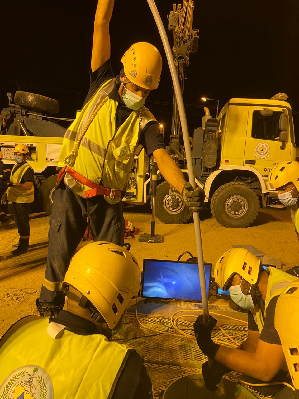 وأضاف العقيد أبا الخيل أنه تمت الاستعانة في هذا الحادث بالتجهيزات الفنية في أعمال الدفاع المدني التخصصية كسيارة التجهيزات الفنية في أعمال الإنقاذ المائي، وكاميرا الإنقاذ في الآبار، بالأضافة الى كافة التجهيزات التي يتطلبها الموقف.