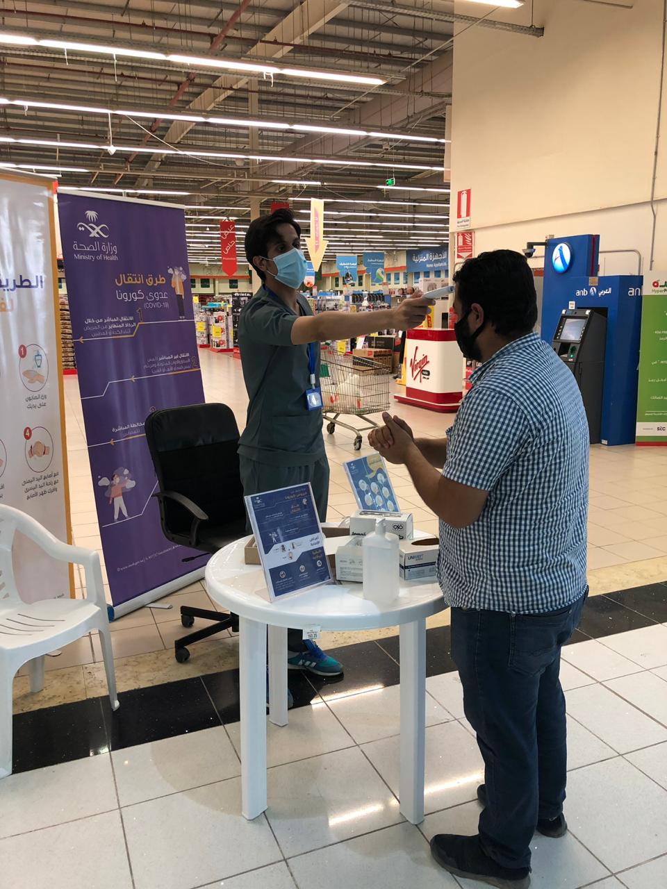 تواصل المديرية العامة للشؤون الصحية بحفر الباطن حملاتها التوعوية للوقاية من فيروس كورونا المستجد”COVID-19″ في الأسواق والمحلات التجارية بهدف توعية العاملين والمتسوقين بطرق الوقائية وأهمية الالتزام بالتباعد الجسدي بمسافة لا تقل عن مترين مع ارتداء الكمامات وغسل اليدين وتعقيمها وعدم المصافحة ، والحد من التجمعات في المكان الواحد بالإضافة إلى تقديم خدمة الفرز البصري للعاملين والمتسوقين للتأكد من سلامتهم ، وتأتي هذه الحملات انطلاقاً من دور صحة حفر الباطن لتثقيف أفراد المجتمع بالالتزام بالإجراءات الوقائية ورفع معدل الوعي الصحي وذلك بإتباع العادات الصحية السليمة حفاظاً على سلامتهم وسلامة المجتمع