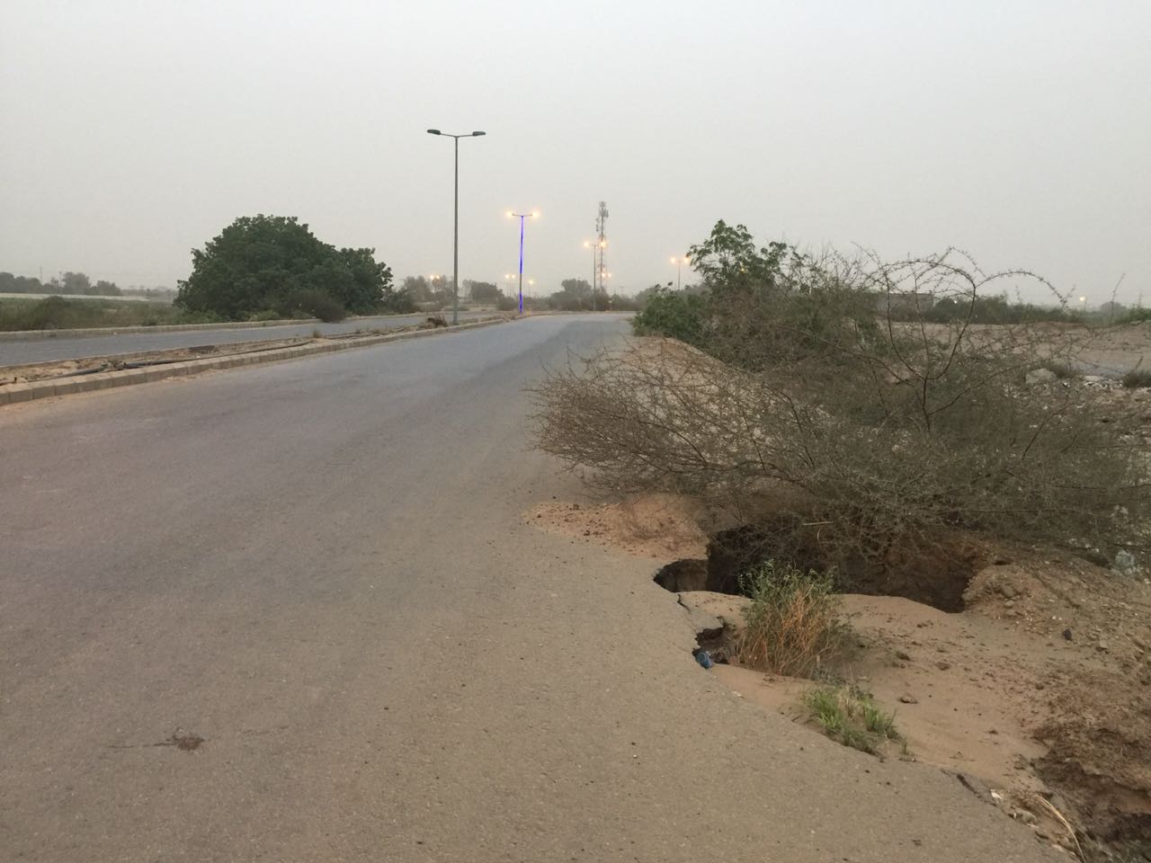 أشتكى المواطنون من أهالي قريتي المجديرة والمدرك التابعة لمحافظة بيش بمنطقة جازان والسالكون للطريق الرابط بين قرية المدرك وقرية المجديرة والخط الدولي من ظهور بعض التشققات والحفر الخطيرة والمميتة جراء الأمطار التي هطلت على محافظة بيش في الأيام الماضية والتي جعلت من هذا الطريق مصدر خطر على حياتهم ومركباتهم، مُضيفين أنه لا توجد لوحات تحذيرية ولا صبات خراسانيه للتحذير من خطورة هذه الحفر والتشققات التي قد تتسبب في وقوع حوادث مميتة في الانفس وأضرار بمركباتهم.