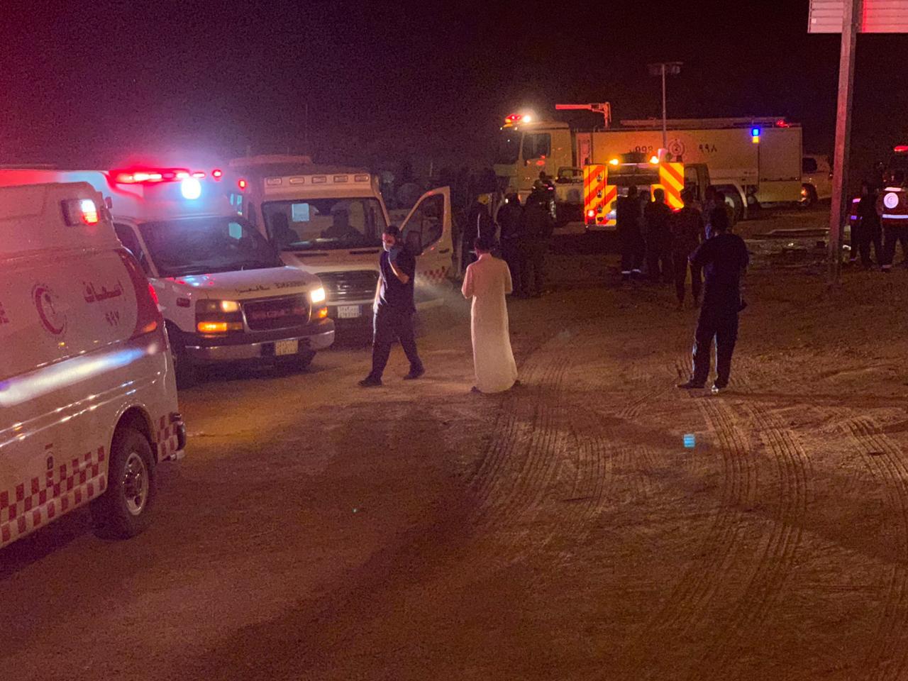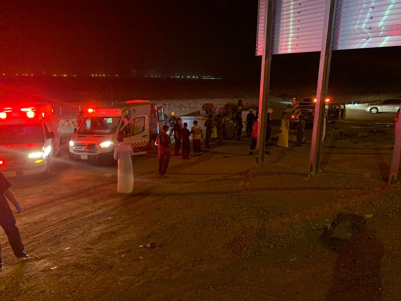 وقال المتحدث الرسمي بهيئة الهلال الأحمر السعودي بمنطقة الرياض ياسر الجلاجل أن غرفة العمليات تلقت بلاغ من مواطن عن انقلاب حافلة نقل جماعي وتصادم اربع سيارات، حيث تم توجيه ثلاثة عشر فرقة اسعافيه للموقع بزمن استجابه بلغ ثمان دقائق، كما تواجدت القيادة الميدانية في الموقع ،حيث تبين وجود خمسة عشر اصابة وحالتين وفاة منها حالتين خطيرة وثلاث حالات متوسطه واربع حالات طفيفه فيما تم علاج حالة في الموقع بعد ان رفض النقل و تم نقل ابع حالات من جهات اسعافية أخرى، حيث تم توجيه جميع الاصابات لمستشفى الملك خالد الجامعي ومستشفى حوطة سدير.