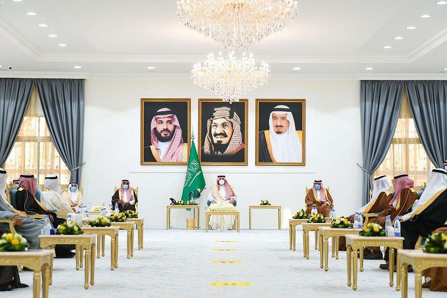 استقبل أمير منطقة الحدود الشمالية، الأمير فيصل بن خالد بن سلطان، اليوم (الجمعة)، شيوخ القبائل والمعرفين والعمد وأعضاء مجلس المنطقة والمجالس البلدية، وجموعا من المواطنين الذين قدموا التهاني والتبريكات لسموه بحلول عيد الأضحى المبارك.
