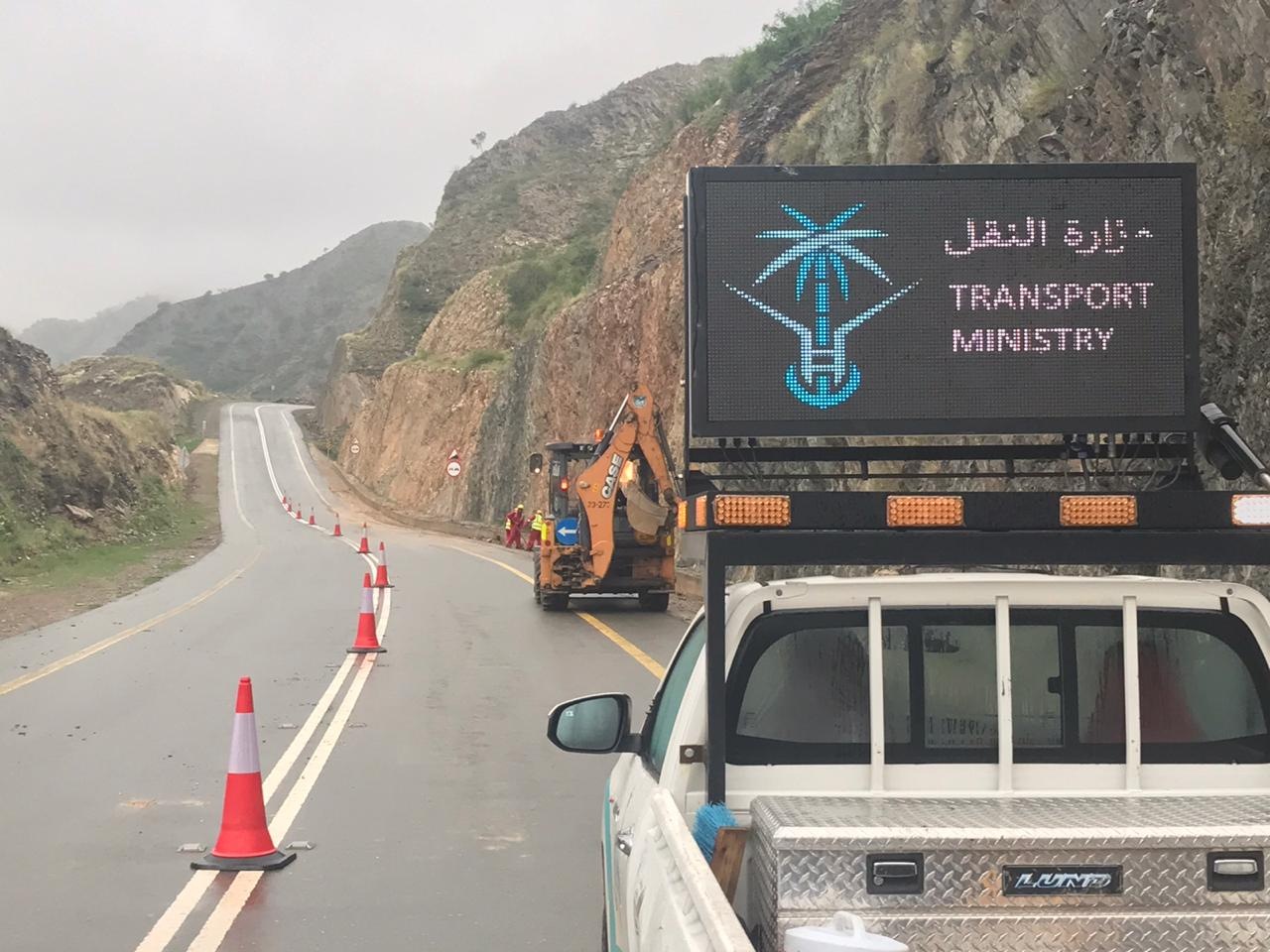 واصل فرع وزارة النقل بمنطقة عسير أعمال الصيانة لطرق المنطقة وذلك بعد تضرر العديد منها بسبب هطول الأمطار بشكل شبه متواصل على المنطقة .