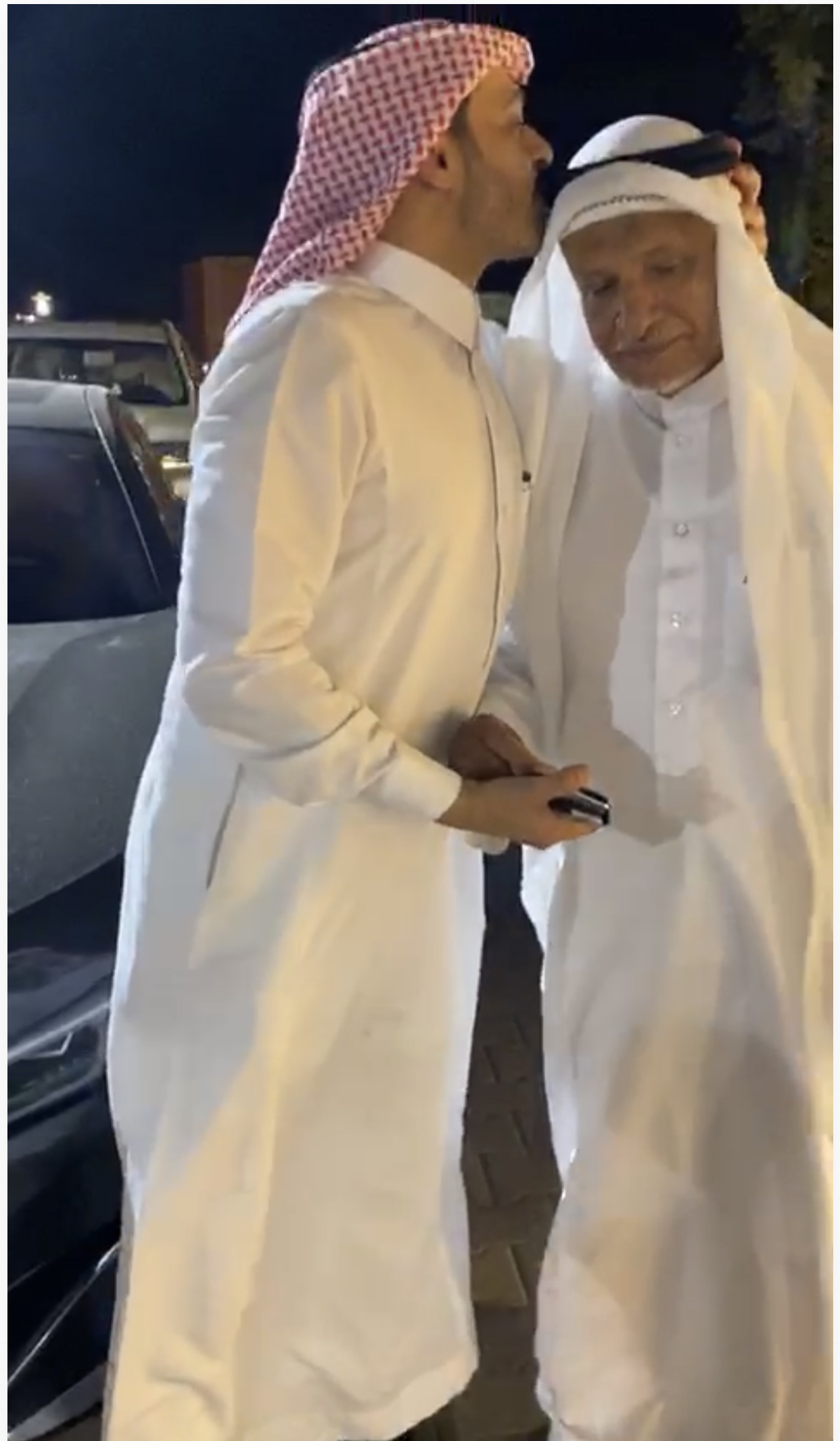 ورصد مقطع الفيديو للشيخ أبن مبيريك بمحافظة رابغ وهو يهدي ابنه الأكبر سيارة من نوع “بي إم دابليو” بمناسبة ترقيته لرتبة رائد في الحرس الوطني داعيا الله له أن يوفقه في خدمة دينه ومليكه ووطنه.