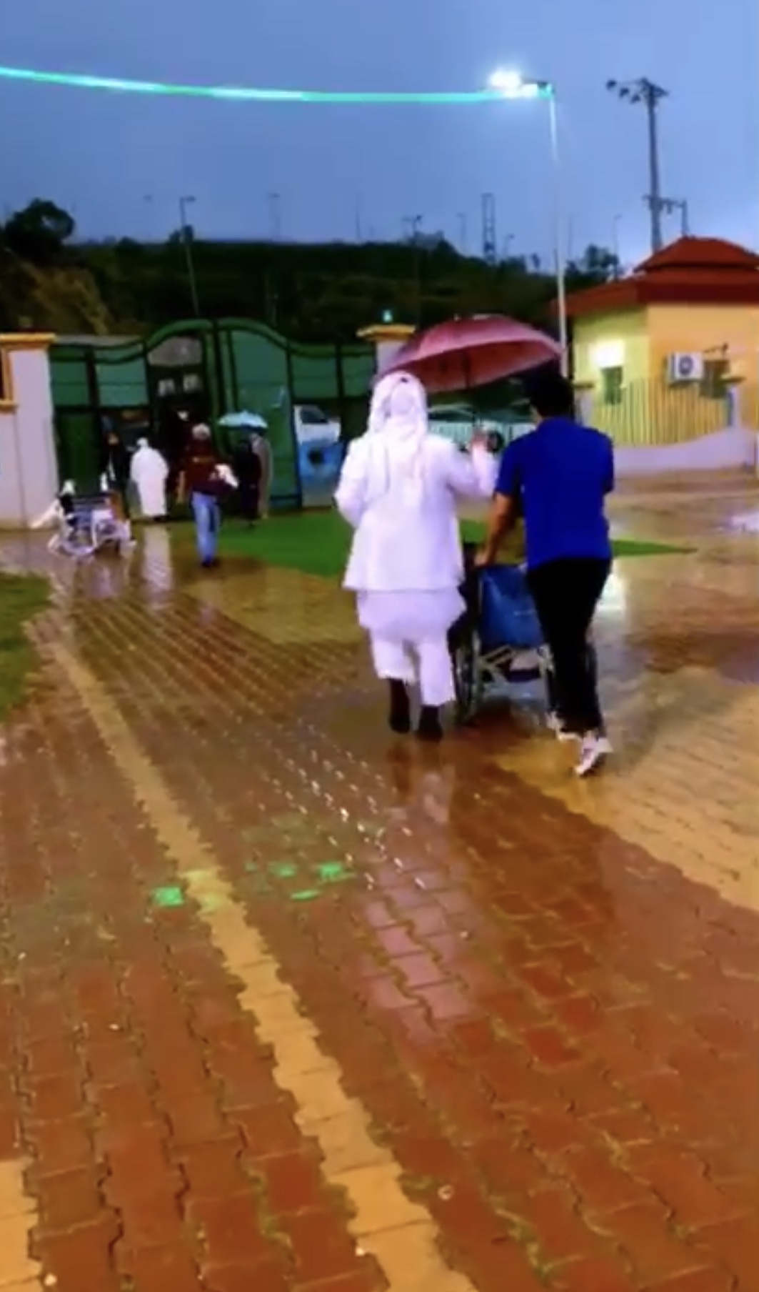 قام حارس الأمن جمعان الزهراني بتغطية أحد ذوي الاحتياجات الخاصة عن المطر ، وذلك بعد هطول الأمطار التي تشهدها منطقة الباحة هذه الأيام .