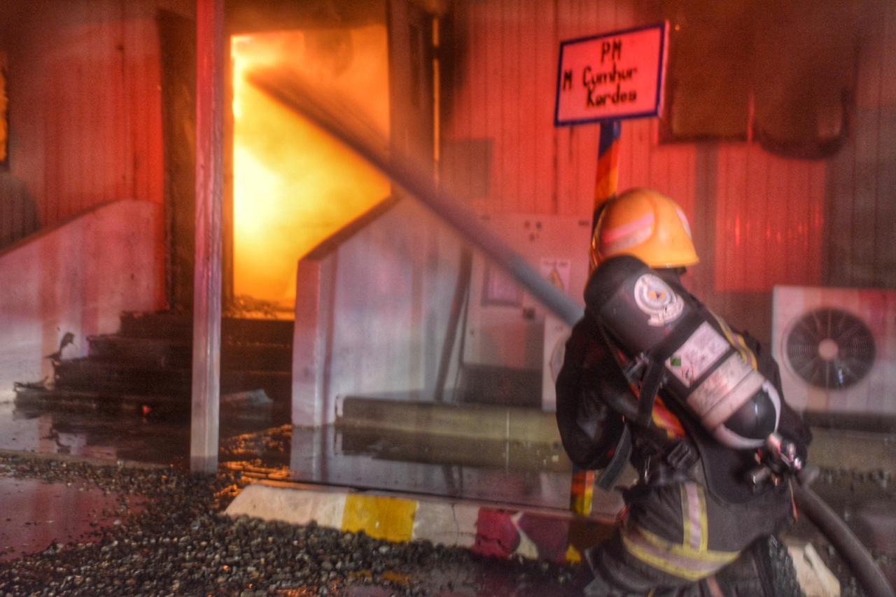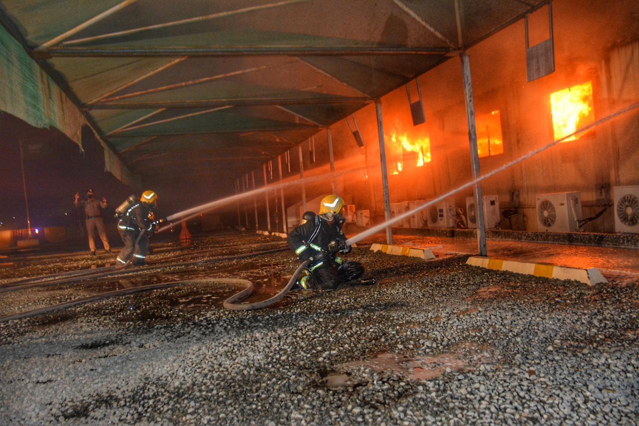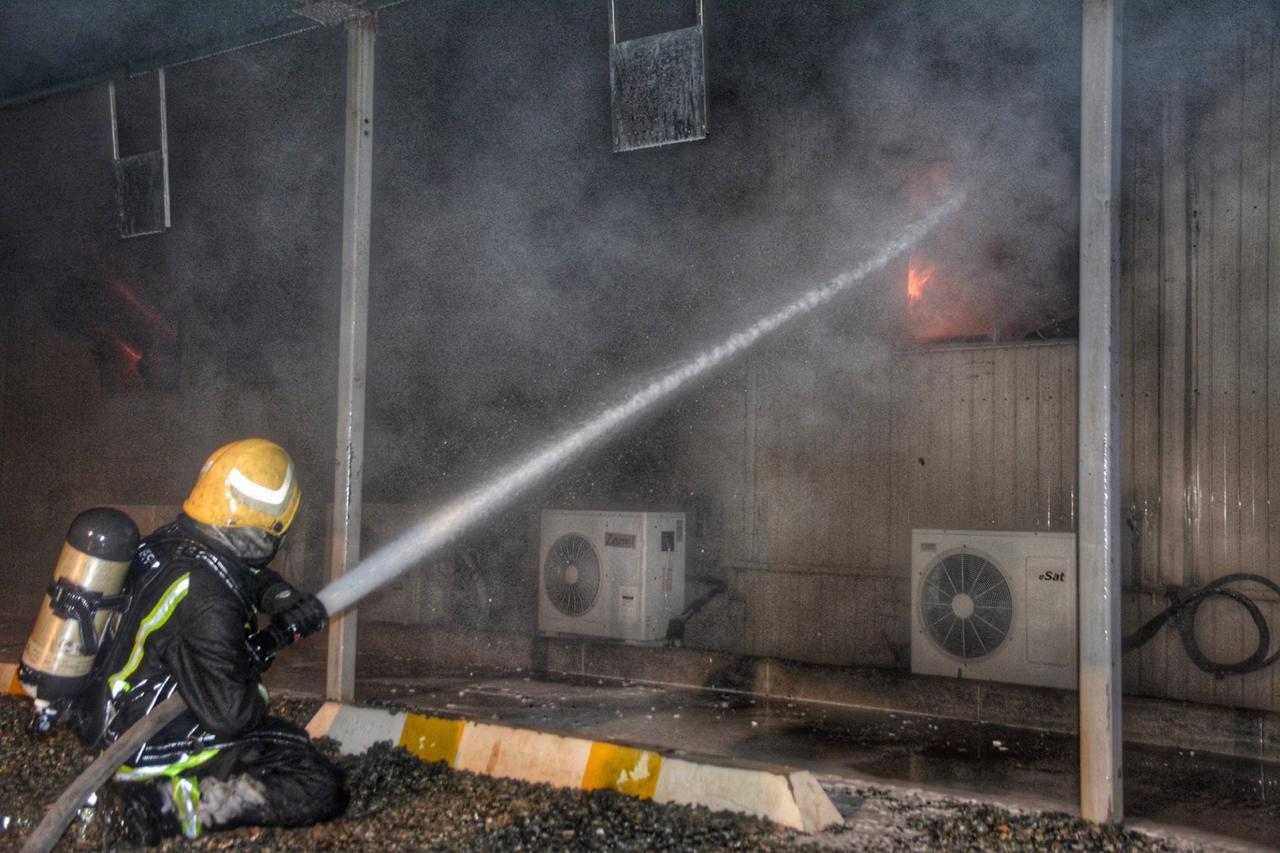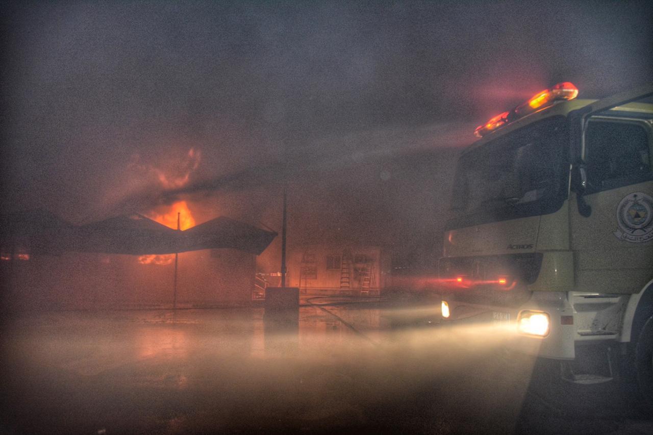وبوصول الفرق إتضح ان الحادث عبارة عن إشتعال النيران في عدد من البركسات المتخذة كمكاتب إدارية بساحة محطة قطار الحرمين بحي السليمانية بمساحة ٢٠*٦٠ م حيث علمت الفرق على إحتواء الحادث في موقعه دون الإنتشار للمواقع المجاورة ولازالت الفرق تعمل لإخماد الحريق دون إصابات حتى لحظة إعداد هذا البيان.