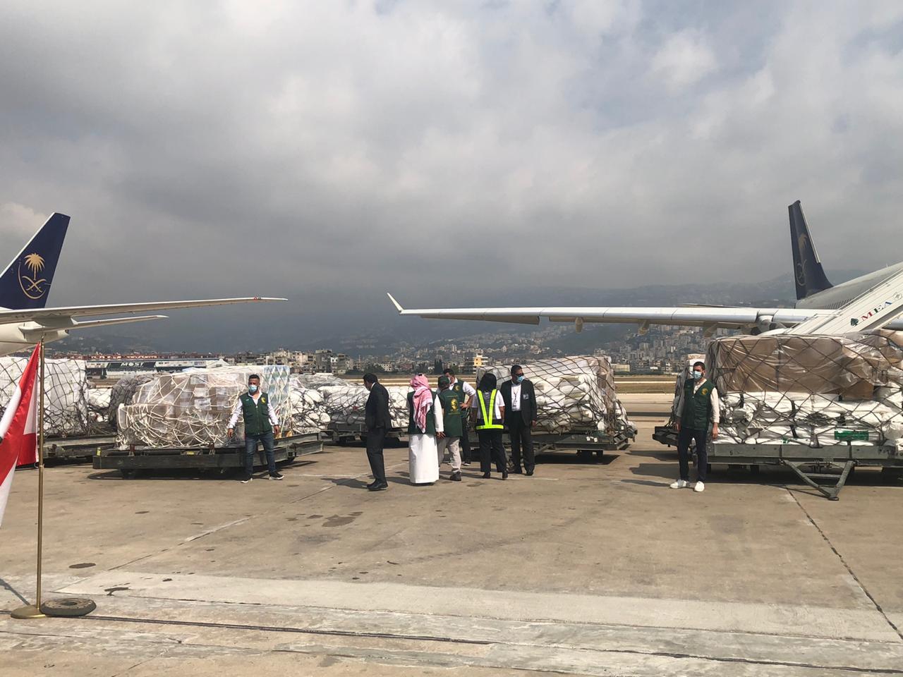 وكان في استقبال أولى المساعدات التي وصلت جوًا عبر طائرتين إلى مطار بيروت الدولي، وزير الداخلية اللبناني محمد فهمي وسفير خادم الحرمين الشريفين لدى لبنان وليد بن عبد الله بخاري، ورافقها فريق مختص من مركز الملك سلمان للإغاثة.
