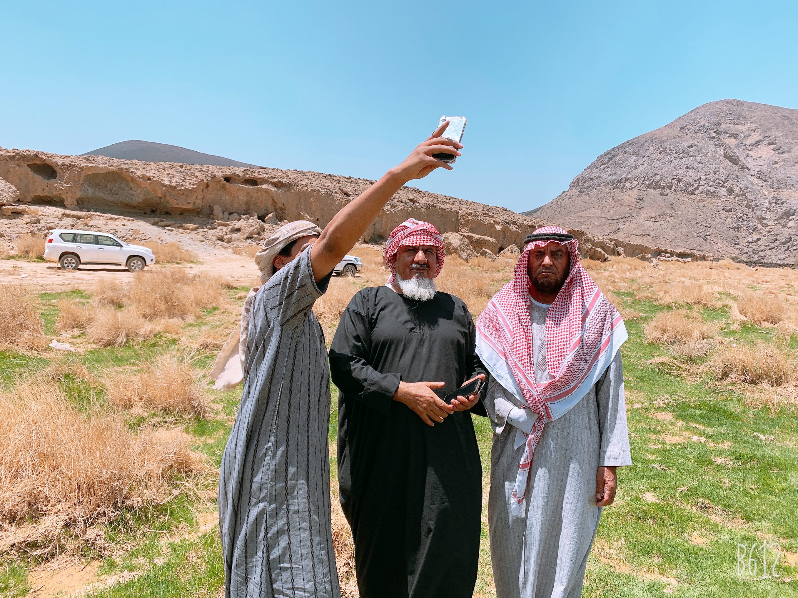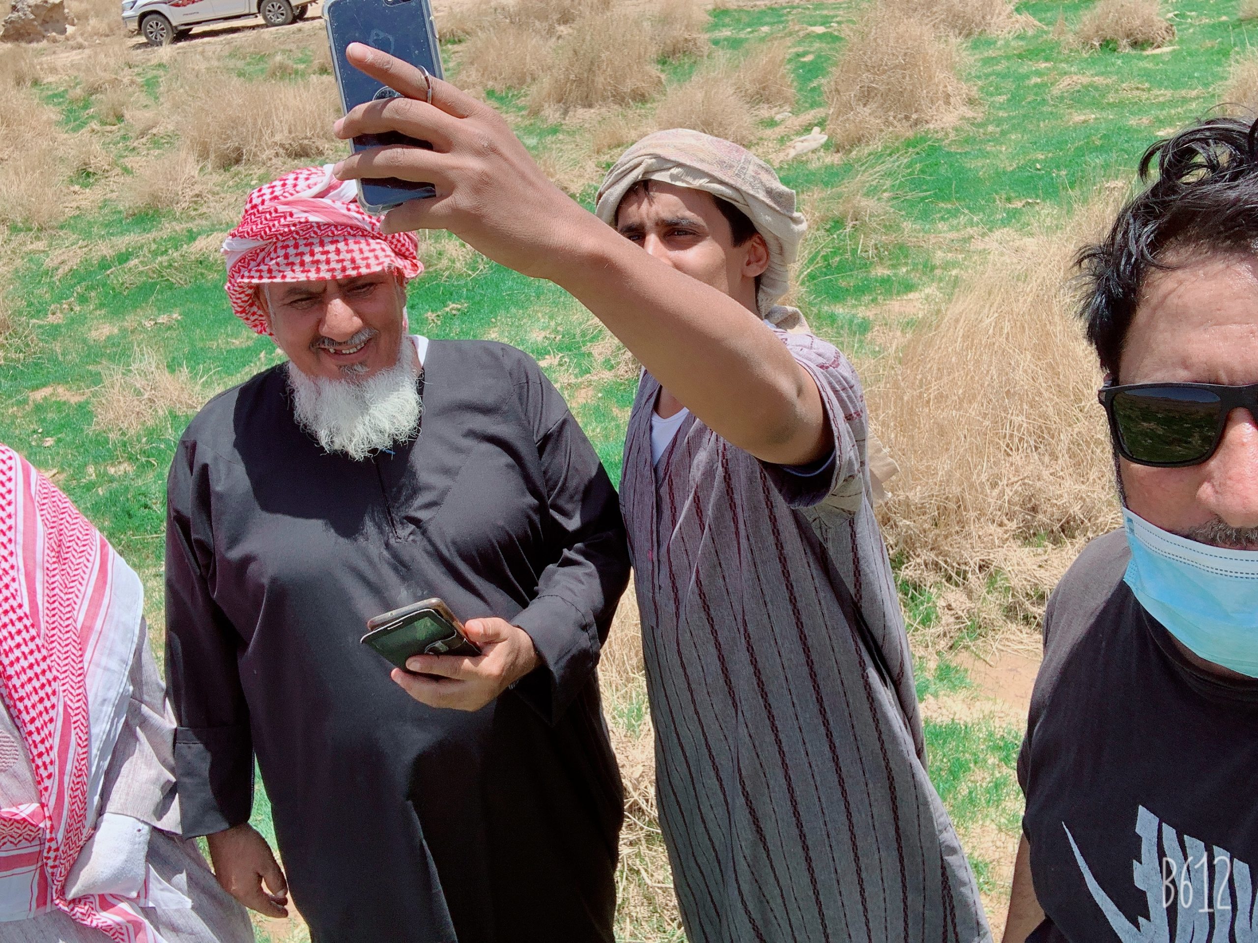 ورافق الإعلامي “عبدالرحمن بن مرشد” النشاما  كل من  من  عواض  العويمري  عايض العويمري ثاني  العويمري  من  قبيلة العوامرة  كذالك مفضي بن محيلب من منطقة القصيم، حيث تحدث   أبو عابد العويمري  أن الجبل الأول مشيراً له هو جبل الشامخ في حرة بني رشيد، ثم جبل الاقليم، ثم جبل الخرايشة، ثم جبل العاقر.
