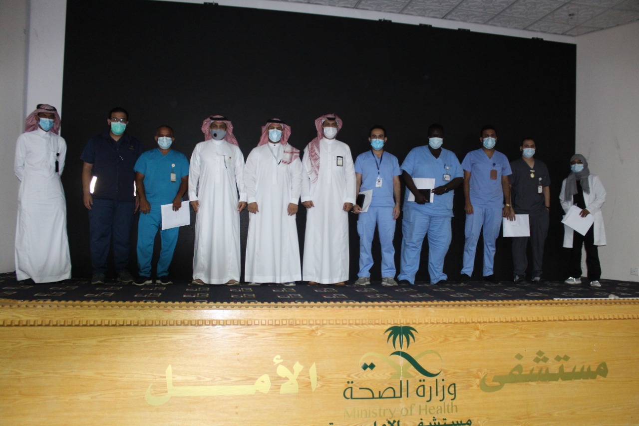 كرمت إدارة الرعاية الصيدلية بصحة جدة اليوم الاثنين الموافق ٢٧ ذو الحجة ١٤٤١ فرسان الصيدلة أبطال كوفيد١٩ بمجمع إرادة والصحة النفسيه لخدمات إرادة بجدة وسلم نائب المشرف العام بمجمع إرادة الدكتور خالد العوفي ونائب مدير الرعاية الصيدلية بصحة جدة الدكتور فهد المولد والدكتور عوض المطيري دروع الشكر للعاملين بالصيدلية.