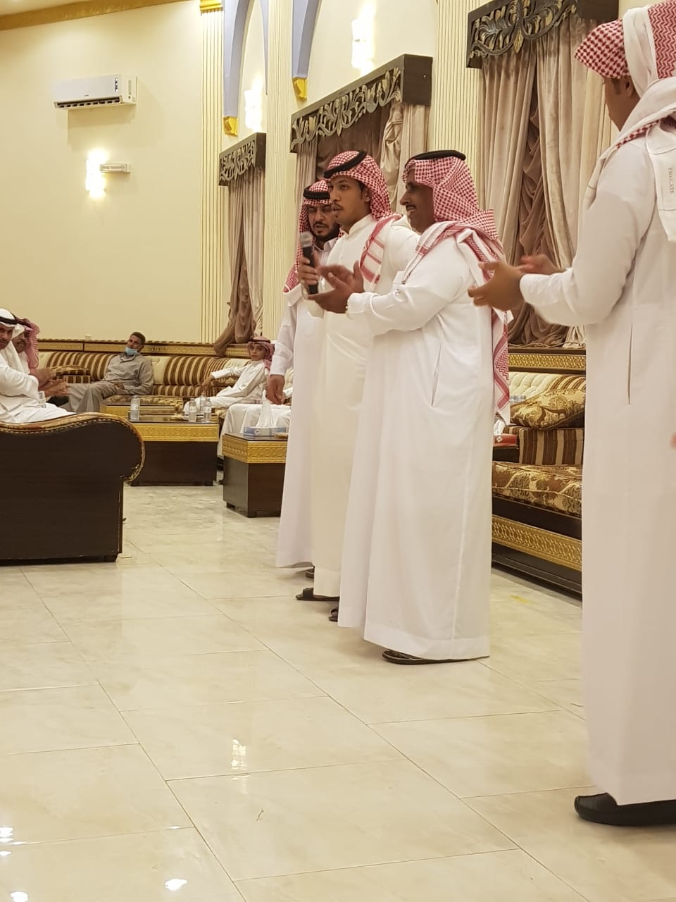 في ليلة من ليالي الفرح والسرور إحتفل الشاب ” يزيد داله كساب التمام العنزي ” بزواجه وسط جو أسري وبشكل مختصر مساء يوم الخميس الموافق ١٤٤٢/١/١ هـ على كريمة شويحط كساب التمام العنزي حيث أقيم الحفل في قاعة ريفال بمنطقة الجوف ، وقد اقتصر حفل الزفاف على العائلة والأقارب وذلك تطبيقاً للإجراءات الإحترازية ، تخلل حفل الزفاف مشاركات شعرية لكل من الشاعر : حاكم العواجي وشاعر التمام الشاعر : ناجح عوض التمام والشاعر : فريح علي العنزي ، في حين قدم الفقرة الشعرية الأستاذ : خالد عبدالكريم الكريم .