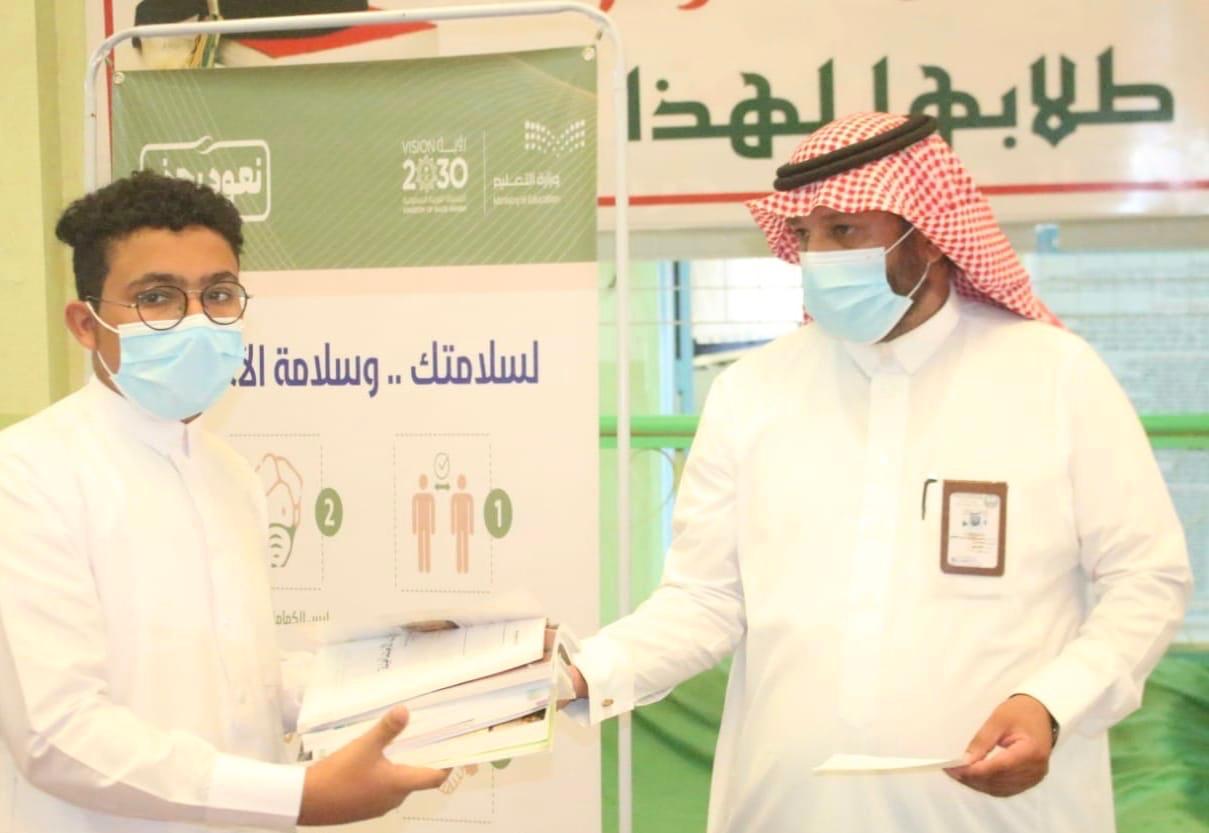 كما قام بتسليم الكتب المدرسية لبعض أولياء الامور والطلاب ونوه بحرص واهتمام سمو أمير منطقة جازان وسمو نائبه على متابعة مسيرة التعليم في المحافظة وإهتمام القيادة الرشيدة بذلك ليحظى الطلاب في مدارس المحافظة بالتعليم وفق الإجراءات الإحترازية ضد فايروس كورونا المستجد (كوفيد ١٩)، منوها في الوقت ذاته بالجهود التي تبذلها وزارة التعليم، وإدارة تعليم صبيا في سبيل تمكين دعم تعليم الطلاب عن بعد .
