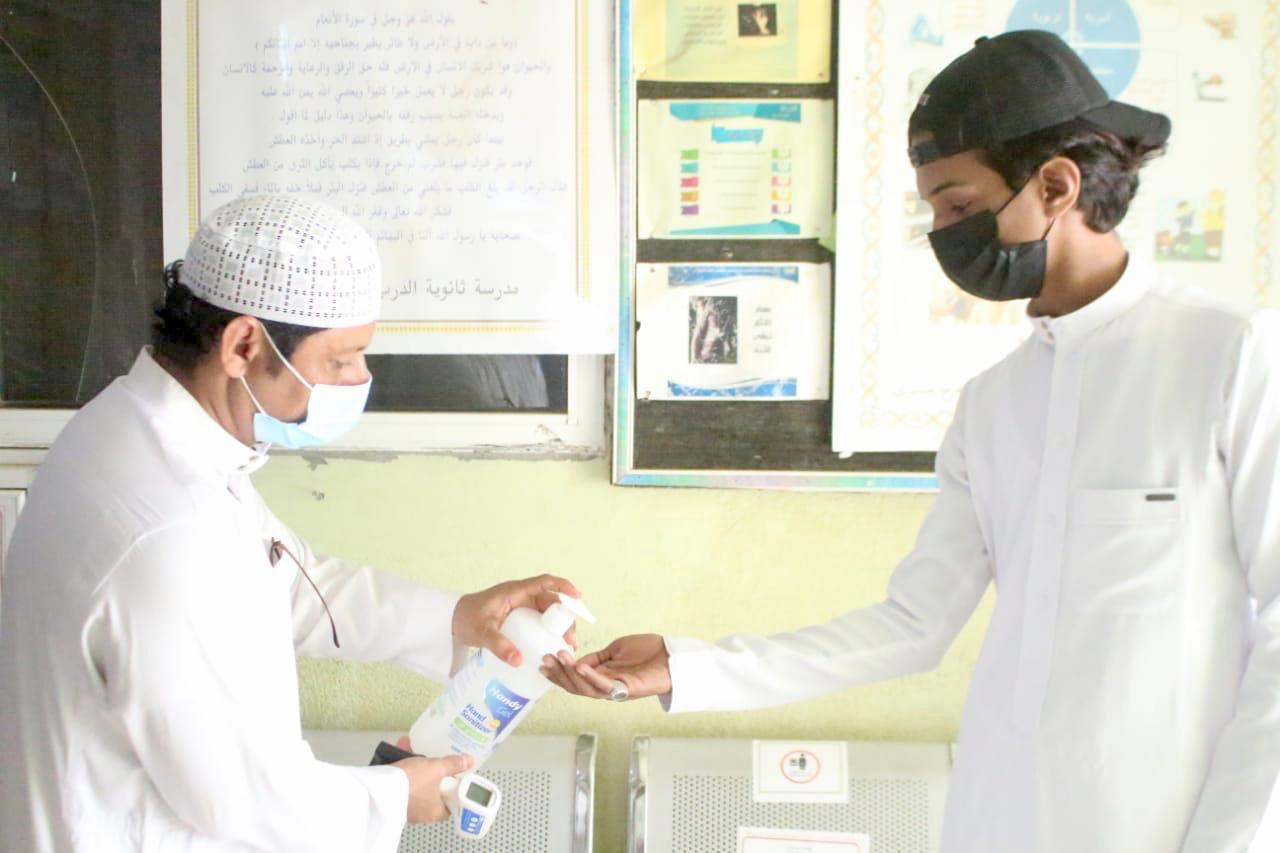 واطلع سعادته على تجهيزات المبنى من غرف المعلمين والإداريين واستمع لشرح موجز من قِبل قائد المدرسة وبعض المعلمين بالمدرسة عن جاهزية بداية العام الدراسي الجديد وفق الإجراءات الاحترازية للوقاية من فيروس كورونا واستمرار العملية التعليمية للطلاب عن بعد .